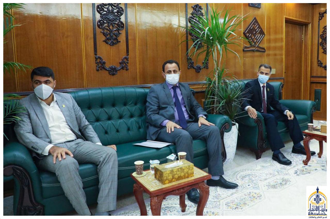 زار وفد من جامعة وارث الانبياء (عليه السلام) جامعة العميد التابعة للعتبة العباسية المقدسة متمثلاً بالسيد المساعد العلمي لرئيس الجامعة الاستاذ الدكتور عباس الدعمي والسيد عميد كلية الطب الاستاذ الدكتور فالح البياتي والسادة معاون رئيس قسم التعليم العالي ورئيس قسم الشؤون العلمية ، كان باستقبال الوفد السيد رئيس جامعة العميد الأستاذ الدكتور مؤيد الغزالي ، تباحث الطرفان في العديد الجوانب التي تخص الواقع التعليمي وآليات التعاون العلمي والأكاديمي وتبادل الخبرات بين الجامعتين لاسيما وقد افتتحت هذا العام كلية الطب في جامعة وارث الأنبياء (عليه السلام).
