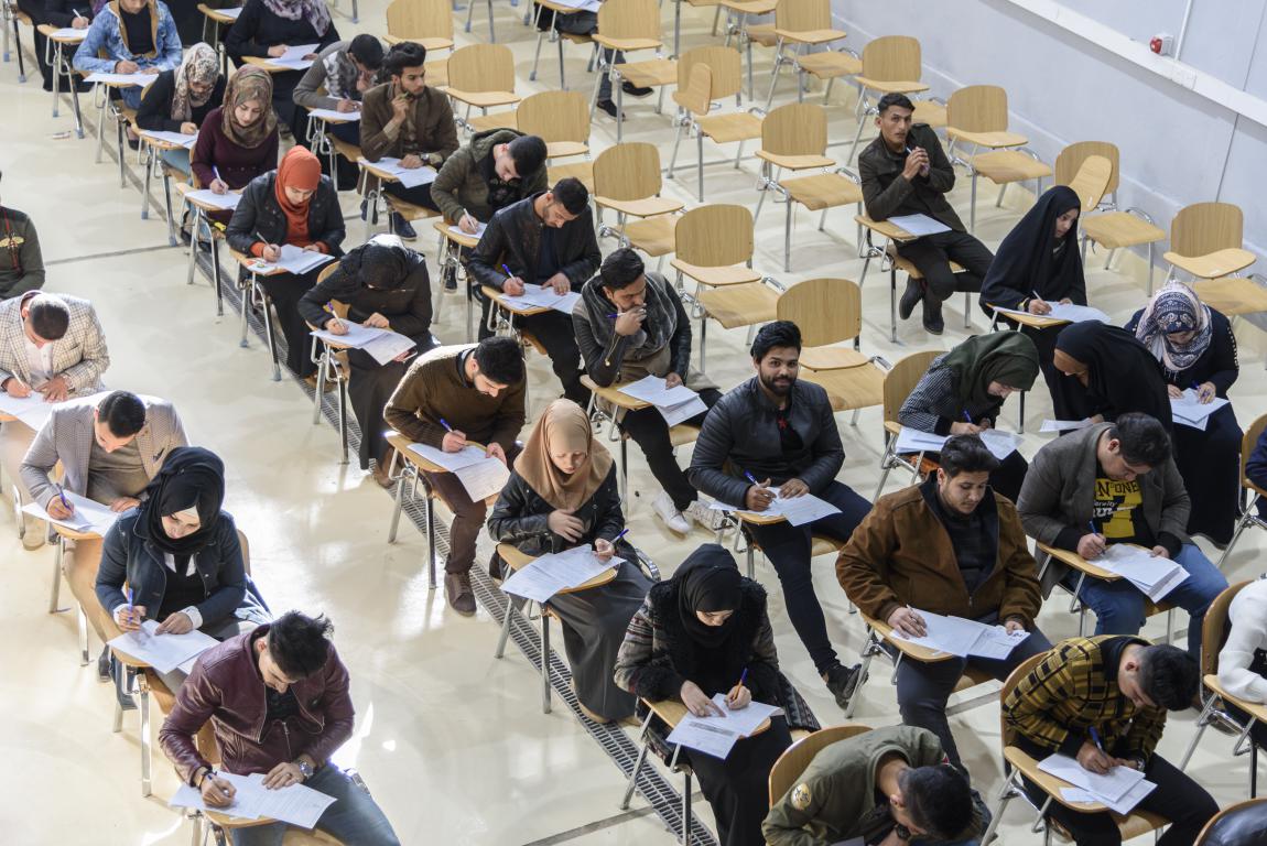 طلبة قسم هندسة تقنيات الروبوتات والذكاء الاصطناعي خلال تأدية امتحانات التقويم المستمر للفصل الدراسي الثاني.