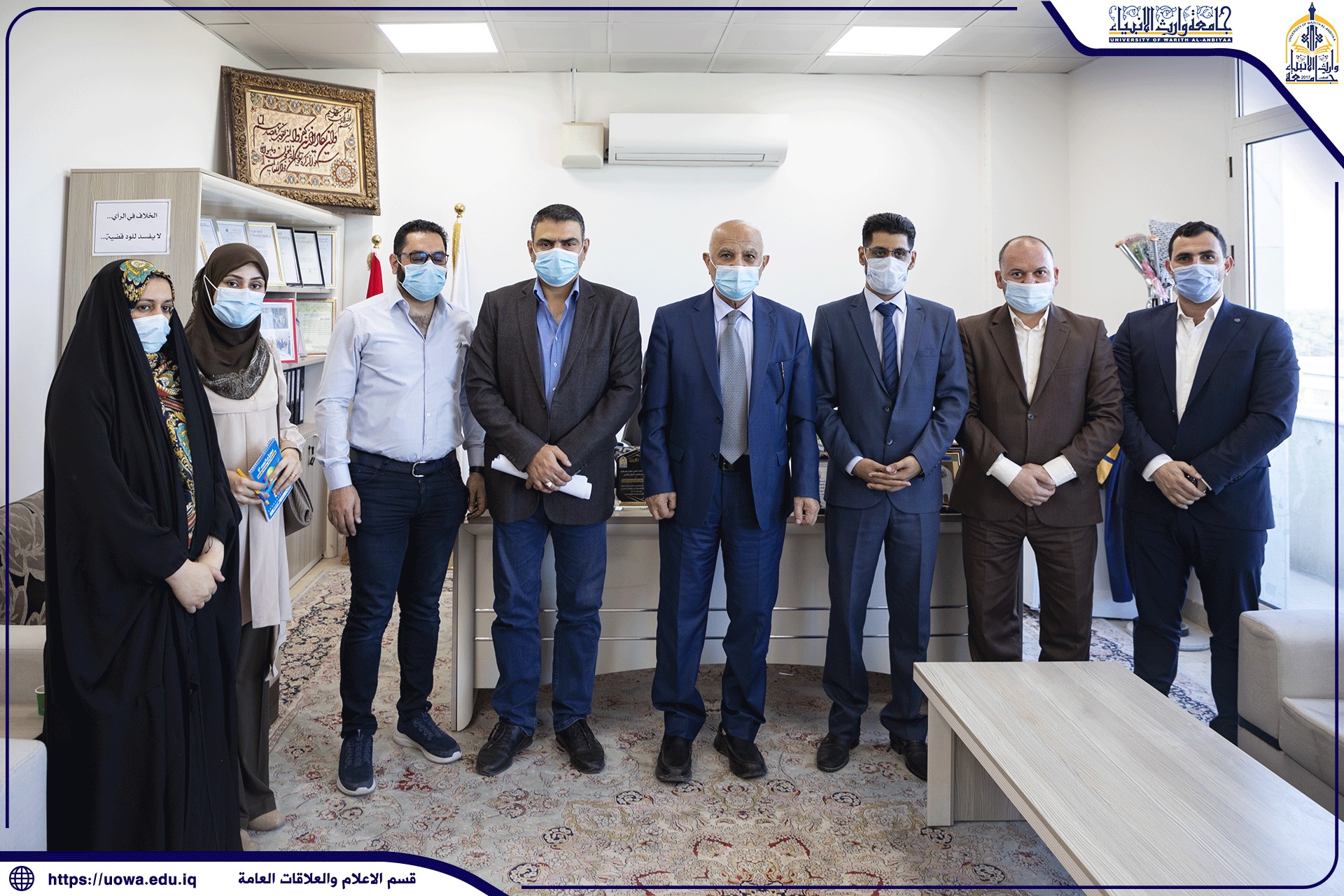 يذكر ان رئاسة جامعة وارث الانبياء(عليه السلام) دائما ما تؤكد على السادة اعضاء هيئة التدريس والطلبة بالالتزام بتطبيق الإجراءات الوقائية داخل اروقة الجامعة.