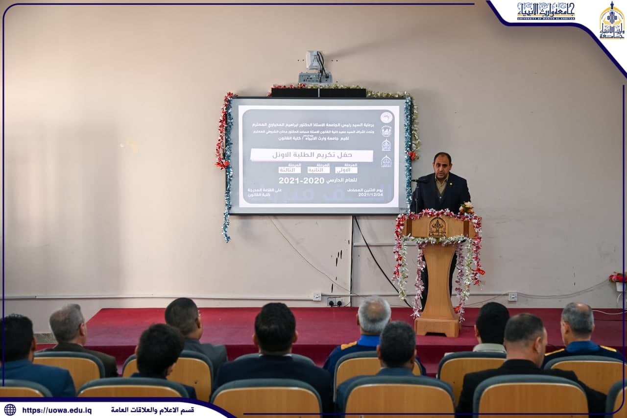 احتفت عمادة كلية القانون في جامعة وارث الانبياء (عليه السلام) بطلبتها الأوائل ولكلا الدراستين الصباحية والمسائية، وذلك عبر تقديم شهادات الشكر والتقدير و الهدايا التشجيعية تثميناً لجدهم واجتهادهم ولتحفيز بقية الطلبة للمزيد من الاجتهاد العلمي .