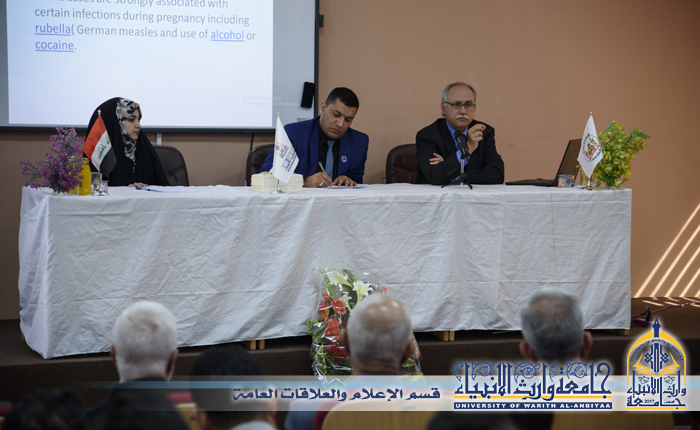 أقيمت في كلية الإدارة والأقتصاد وبالتعاون مع رئاسة الجامعة ندوة علمية بعنوان (التّحليل النسيجي والنفسي لعارض التوحُّد) ألقاها الأستاذ الدّكتور اكرم يوسف ياسر المتخصص في علم الانسجة ، وقال الدّكتور اكرم أن ألهدف من هذهِ المحاضرة هو التّعريف كيف يحصّل عارض التوحُّد وما هي النصيحة التي تٌقدّم الى العوائلِ وبالأخص الأم الحامل التي عليها ان تكون حريصة قبل الحمل وأثنائه على تجنب طفلها هَذَا العارض، وأضاف أنني أشجع وأثني على جامعة وارث الأنبياء لتبنيها هَكَذَا ندوات ومحاضرات والتواصل مع الجامعات الأخرى وأرى ان الأمور فِيهَا واعدة الى خير خدمة للعملية التعليمية