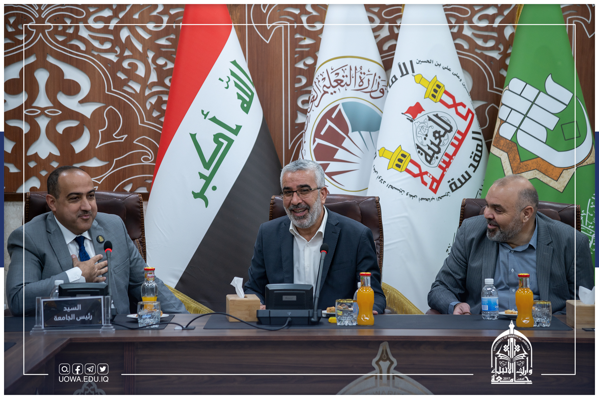 زار جناب الأمين العام للعتبة العلوية المقدسة السيد عيسى الخرسان يرافقه السيد نائب الامين العام للعتبة الحسينية المقدسة الدكتور علاء ضياء الدين، والوفد المرافق لهما جامعة وارث الانبياء(عليه السلام)، وكان باستقبالهما السيد رئيس الجامعة الاستاذ الدكتور ابراهيم الحياوي والسادة مساعدي رئيس الجامعة وعدد من عمداء الكليات، إذ اطلع جناب الأمين العام على صرح الجامعة وأعرب عن اعجابة الشديد بما تمتلكه من امكانيات مادية وبشرية