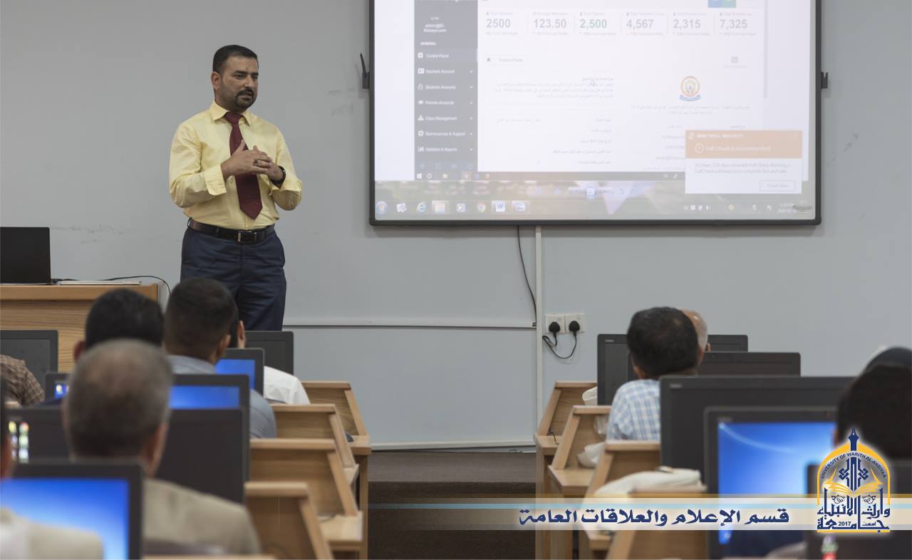 اقامت جامعة وارث الانبياء ورشة تدريبية لكوادرها وتدريسيها وذكر التدريسي في كلية الادارة والاقتصاد في جامعة كربلاء الدكتور مشتاق كريم أن الورشة التدريبية جاءت على ضوء الامكانيات الكبرى لاستخدام الحاسوب في تقريب المسافات وايصال المعلومات بشكل أكبر واختصار الوقت وأضاف أن الورشة تضمنت التعريف بالمنصة الالكترونية وتطبيقاتها وكيفية الادارة الذكية للكليات والجامعات ودعم التعليم الالكتروني, ومن الجانب الاداري بين أن الادارة في الجامعة ستكون الكترونية من قبل عمادات الكليات او ادارة الجامعة وسيكون وهناك تطبيقات للهواتف الذكي بين الطلاب والاساتذة واولياء الامور لتسهيل التواصل وكذلك دعم موقع الجامعة من خلال رفع جميع المحاضرات على الموقع الالكتروني وتسهيل جمع المعلومات وتثبيتها من حيث الاقساط الدراسية وتساعد كذلك في انضباط الطلبة والتزامهم بالدوام لانها تسجل الحضور اول بأول وكذلك الدرجاتوأشار كريم الى انها خطوة جيدة لاقت استحسان الكثير من الطلبة سابقا فيما يرتبط بالامتحان الالكتروني.