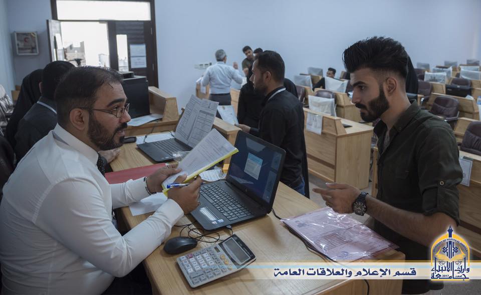 استقبلت جامعة وارث الأنبياء الطلبة الراغبين بالتقديم على كليات و أقسام الجامعة وتم توجيههم من قبل الفريق الإلكتروني الخاص بالتسجيل بملئ الاستمارات والمعلومات ومصادقتها من قبل الجامعة.