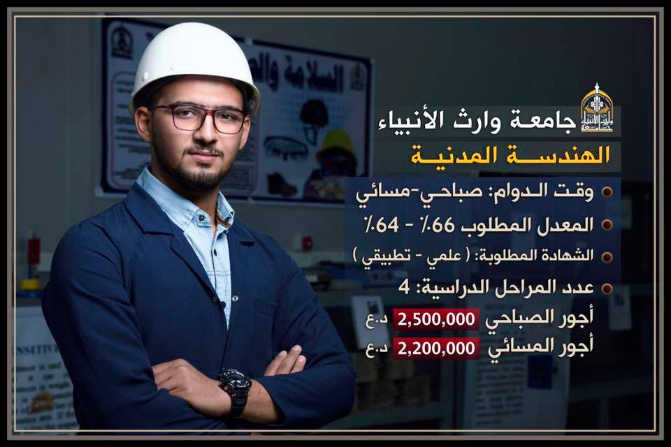عاجل عاجل الى خريجي الدراسة الاعدادية (الدور الثالث) ندعو طلبتنا الاعزاء الراغبين بالتقديم على #جامعة_وارث_الانبياء_التابعة_للعتبة_الحسينية_المقدسة للعام الدراسي ٢٠١٨-٢٠١٩ نعلمكم بان التقديم للقبول يبدء من اليوم الاحد في كليات واقسام الجامعة في مقر الجامعة