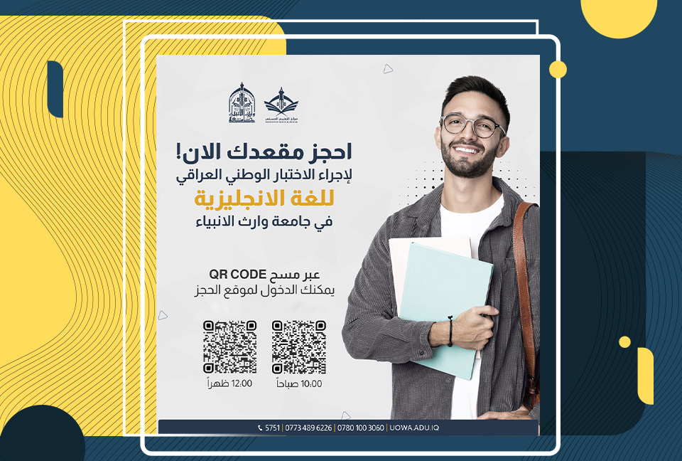 جامعة وراث الانبياء تعلن عن فتح الحجز للاختبار الوطني العراقي للغة الانكليزية الموحد وبموعدين مختلفين للإختبار