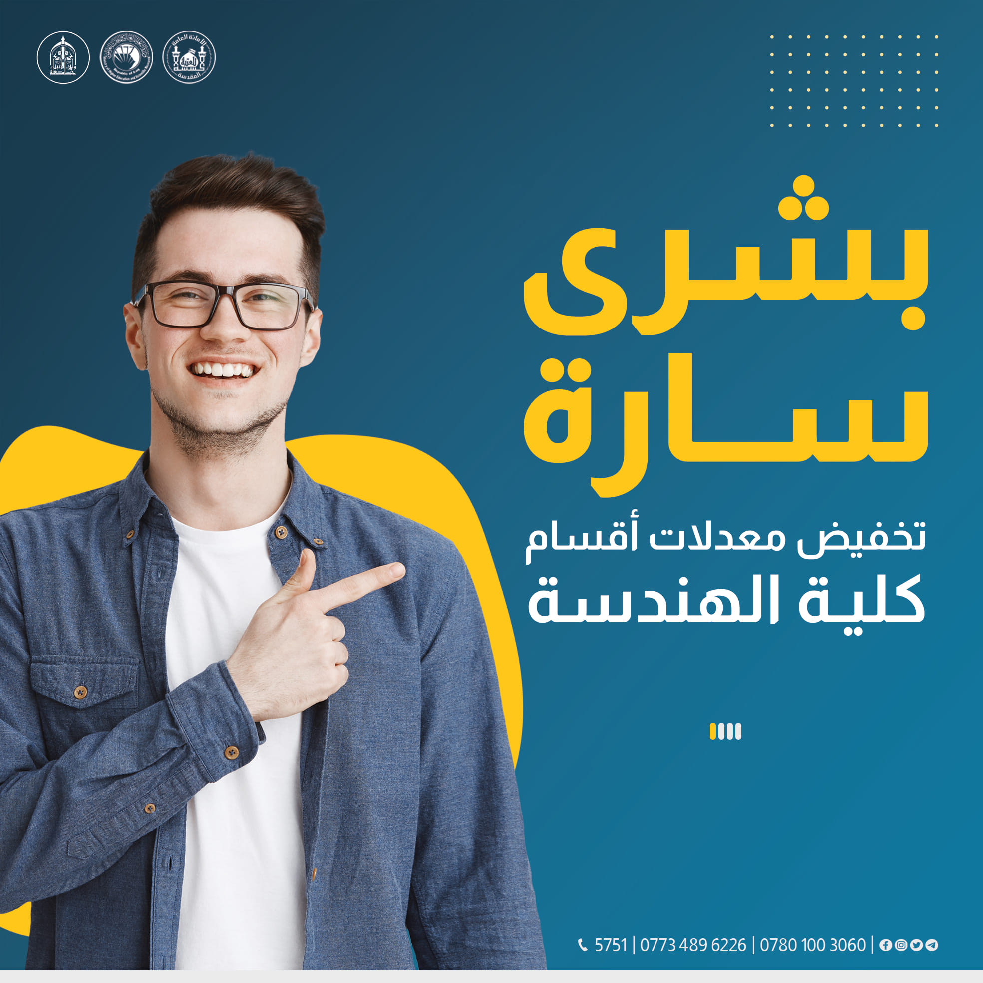 🔸اعزاؤنا الطلبة مع تمديد فترة التقديم على الجامعات والكليات الاهلية نفتخر بتوفير مقاعد كافية لقبول للطلاب الطموحين، للوصول إلى التعليم العالي للجميع وتوفير بيئة تعليمية محفزة ومثيرة تعزز تطوير مهاراتكم.