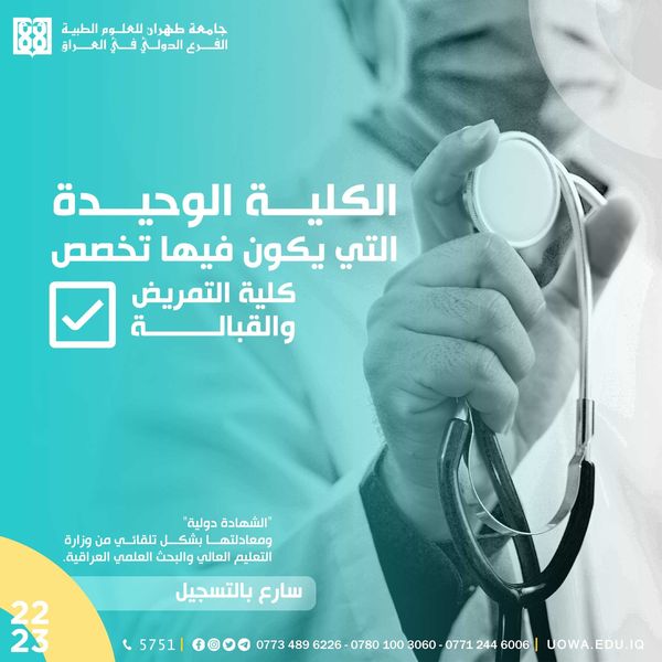*عزيزي الطالب ايام قليلة لانتهاء التسجيل استثمر الفرصة الاخيرة للتسجيل في كليتا التأهيل والعلاج الطبيعي والتمريض والقبالة.