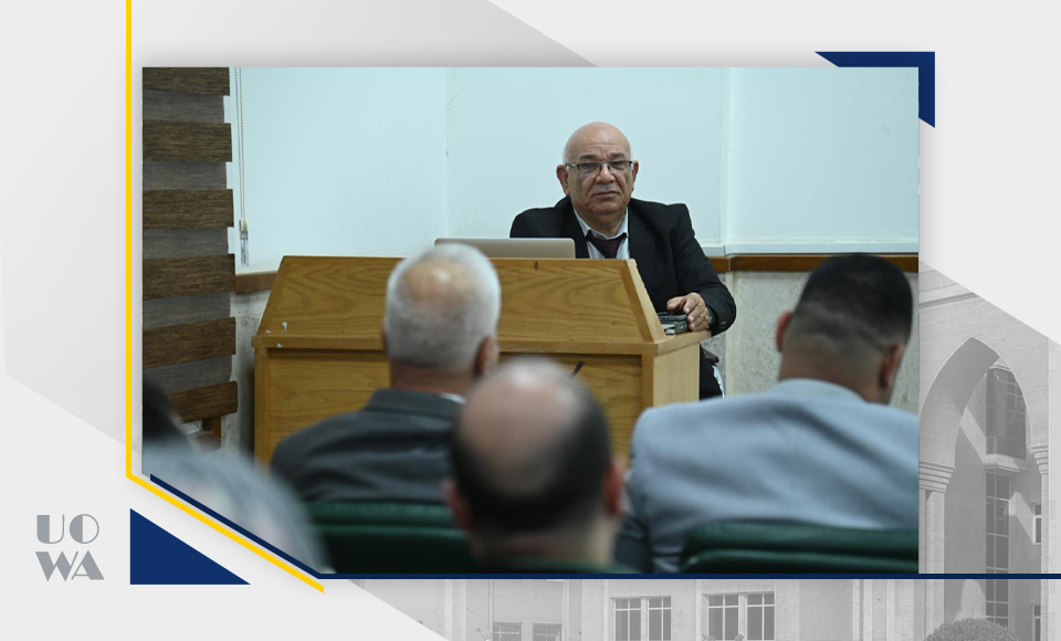 برعاية السيد رئيس الجامعة الأستاذ الدكتور إبراهيم سعيد حياوي المحترم، وبتوجيه السيد عميد الكلية الأستاذ الدكتور عواد الخالدي،كرم قسم المحاسبة نخبة من الملاكات التدريسية والطلبة المتميزين، تثمينًا لجهودهم في تحقيق المراتب المتقدمة في الامتحانات الوزارية للعام الدراسي 2024/2025. وشمل التكريم مجموعة من التدريسيين تقديرًا لعطائهم العلمي ودورهم في دعم العملية التعليمية والبحثية، إضافة إلى تكريم الطلبة الأوائل احتفاءً بتفوقهم وتحفيزًا لهم نحو المزيد من الإبداع والتميز.