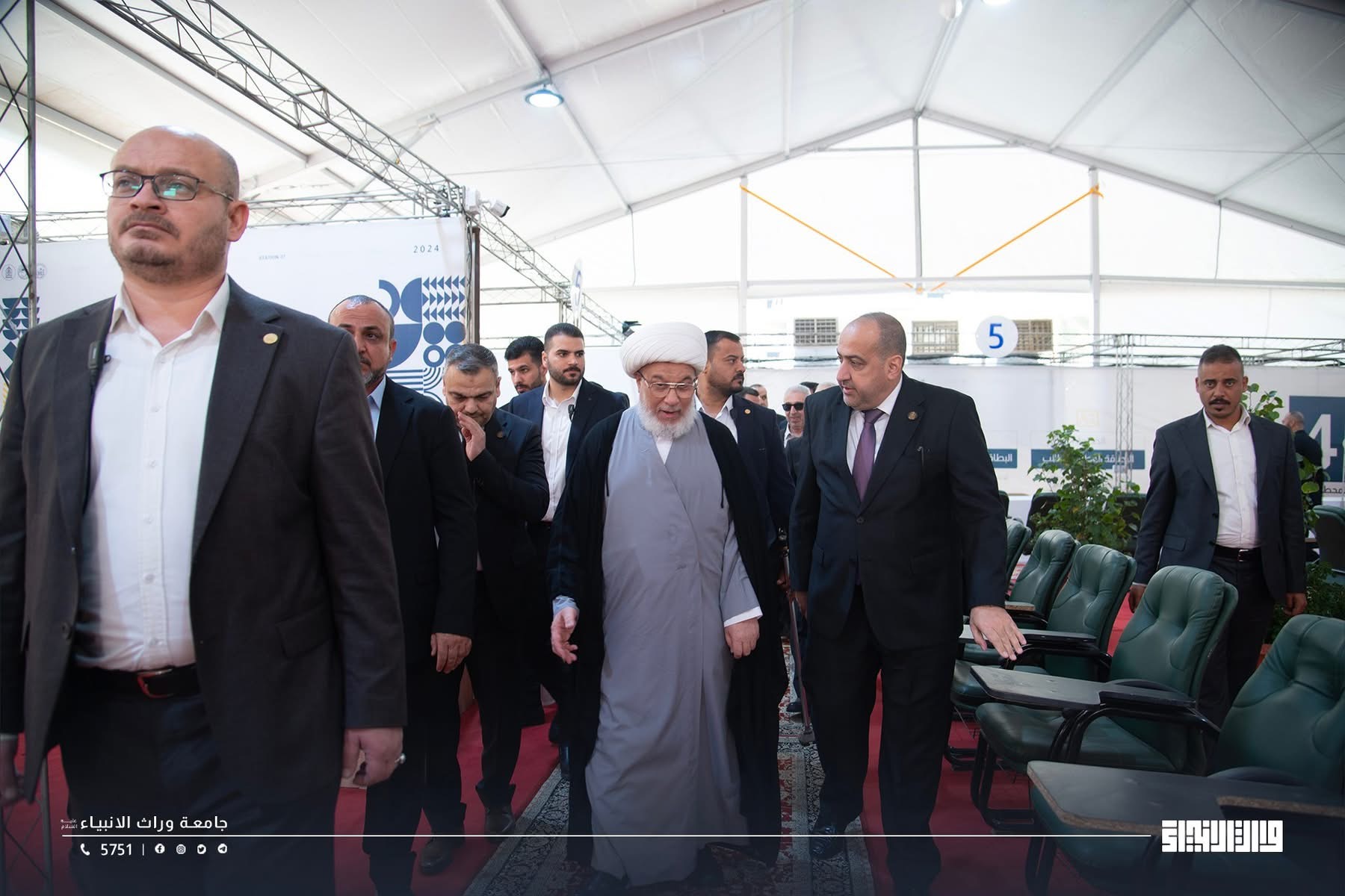 ممثلُ المرجعيةِ الدينيةِ العليا، سماحة الشيخ عبد المهدي الكربلائي (دام عزّه)، يزورُ خيمةَ التسجيل في جامعةِ وارث الأنبياء (ع) ويلتقي بعوائلِ الطلبة.
