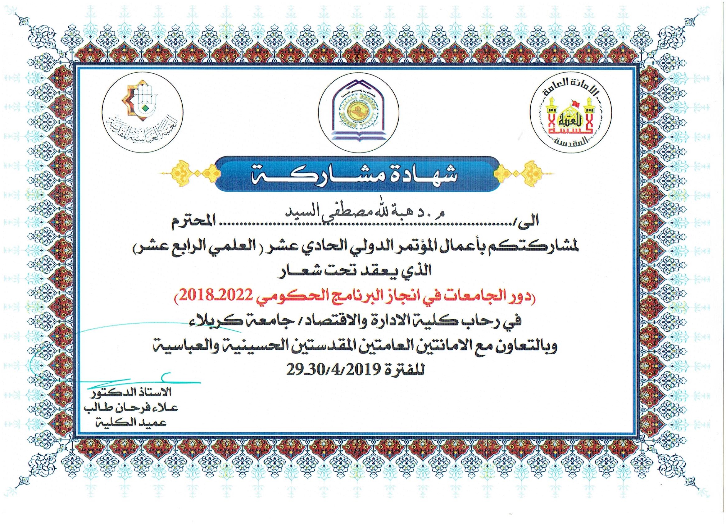 شاركت الدكتورة هبة الله مصطفى السيد علي التدريسية في قسم المحاسبة /كلية الادارة والاقتصاد / جامعة وارث الانبياء في المؤتمر العلمي السابع (لبحوث السوق وحماية المستهلك) والذي انعقد في جامعة بغداد (25) نيسان 2019 , وحصلت الدكتورة هبة الله مصطفى على درع للمشاركة الفعالة و شهادة تقديرية وشهادة مشاركة من مركز بحوث السوق وحماية المستهلك/ جامعة بغداد وذلك لمشاركتها المتميزة في القاء بحث بعنوان ((تسخير الرقمنة لتحقيق اهداف التنمية المستدامة 2030 , تجربة امارة دبي))