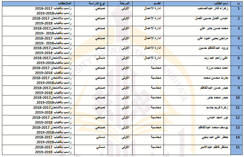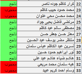 جدول اسماء الطلبة