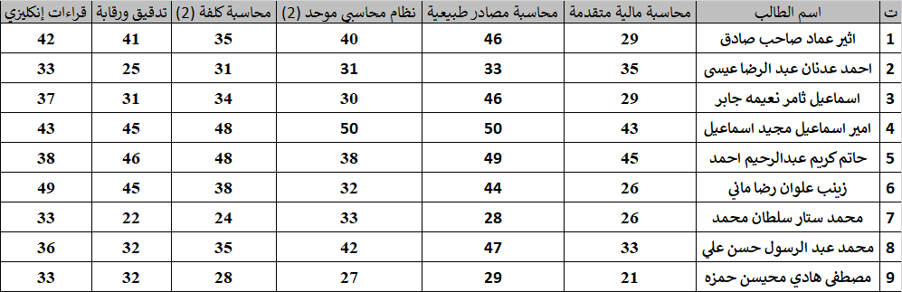 طلبة المرحلة الثالثة/قسم المحاسبة الاعزاء