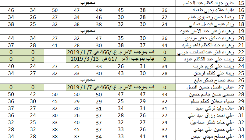 السعيات النهائية للكورس الثاني -قسم ادارة الاعمال مرحلة الاولى وللدراسة الصباحية والمسائية /2018-2019