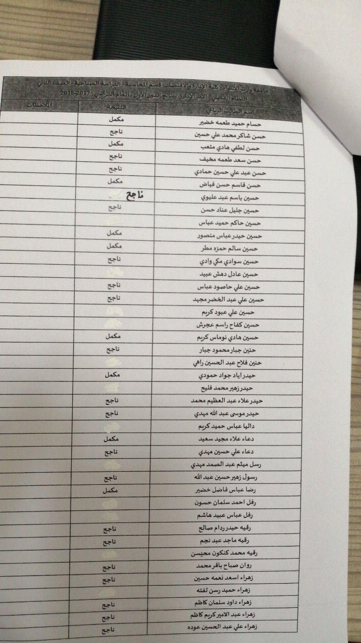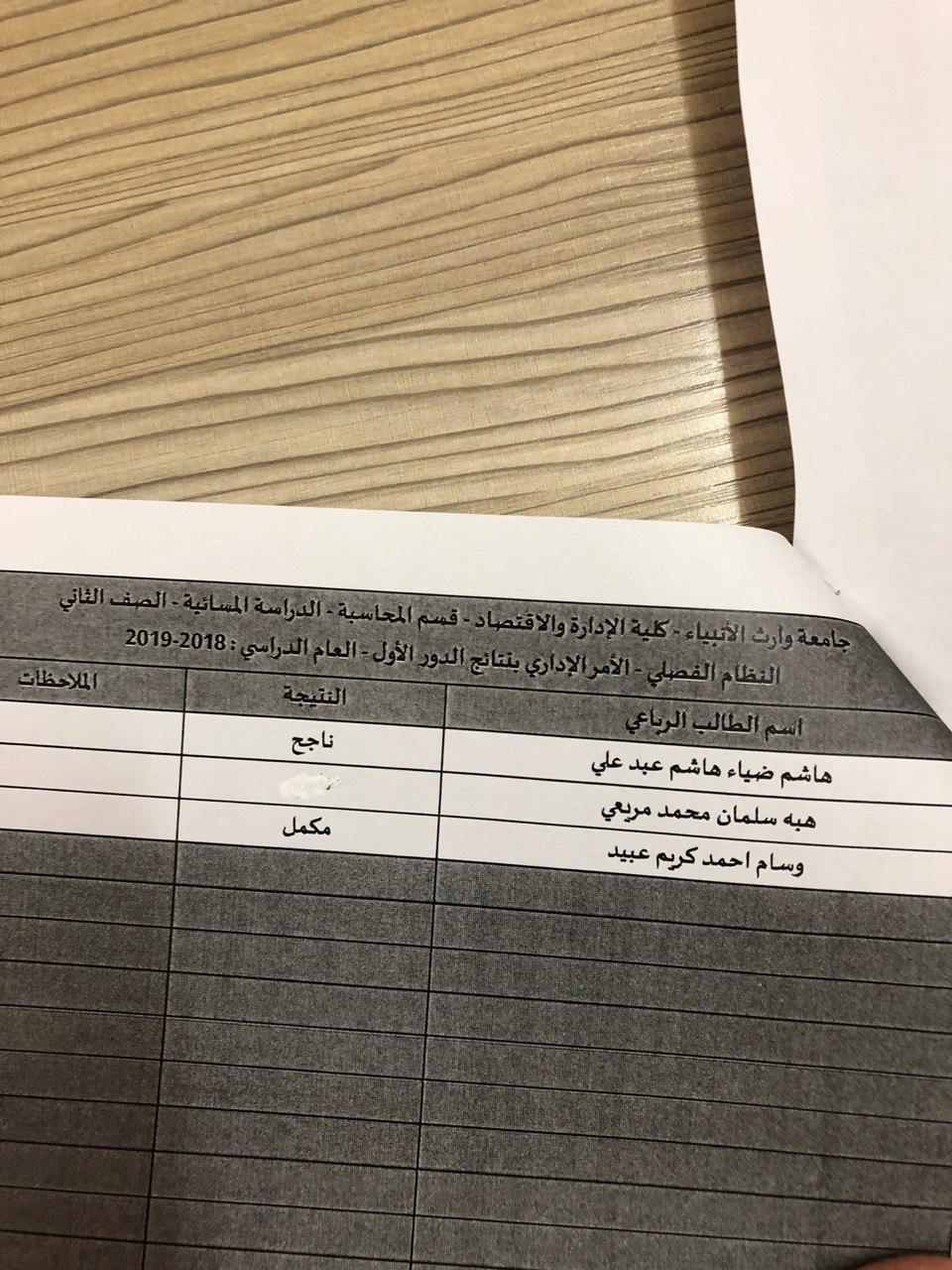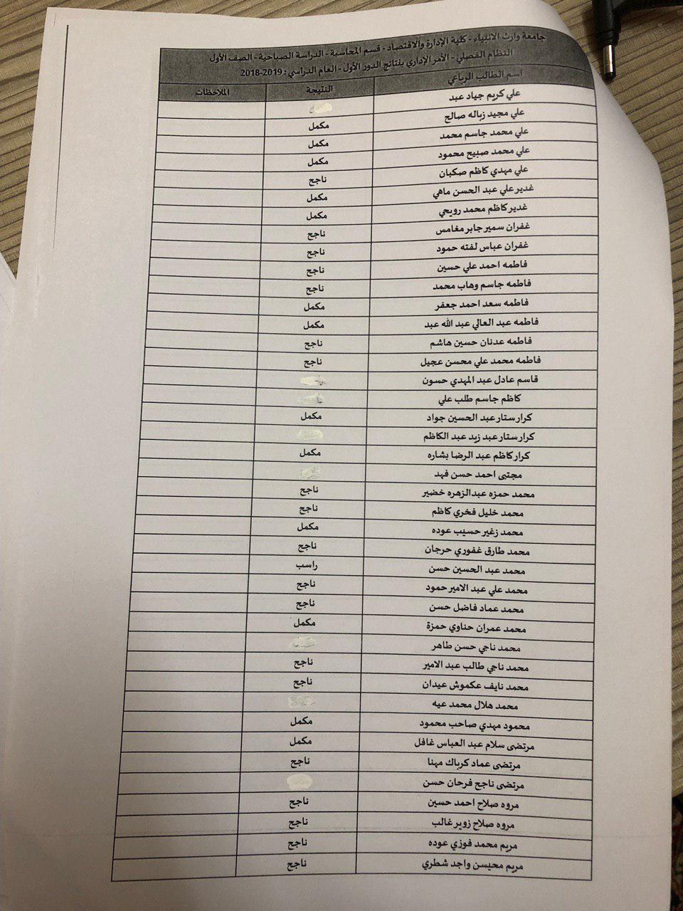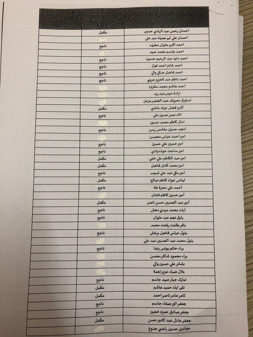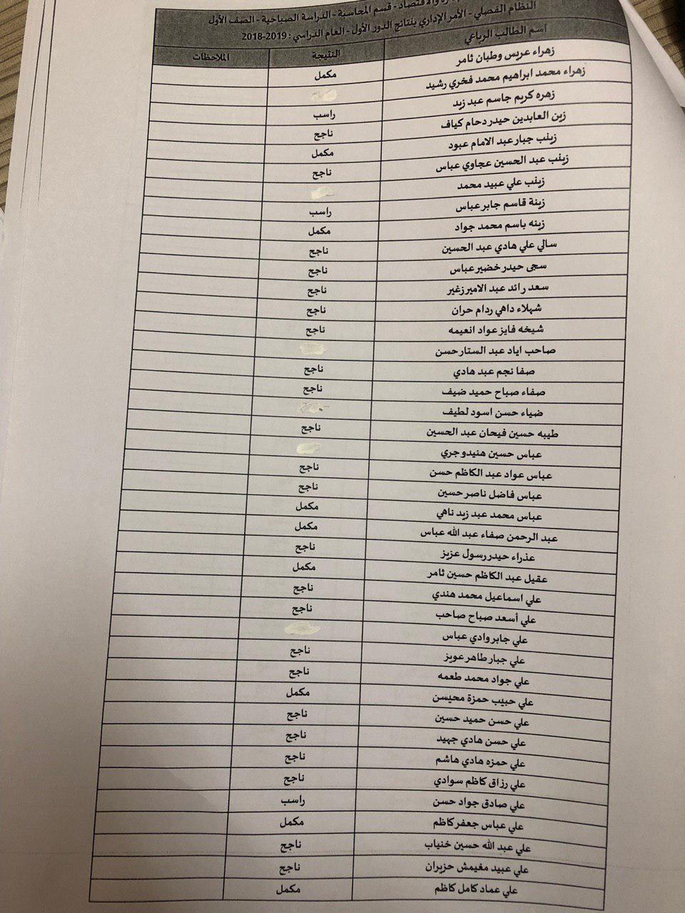 نتائج النهائية للكورس الثاني 2018-2019 / قسم المحاسبة
