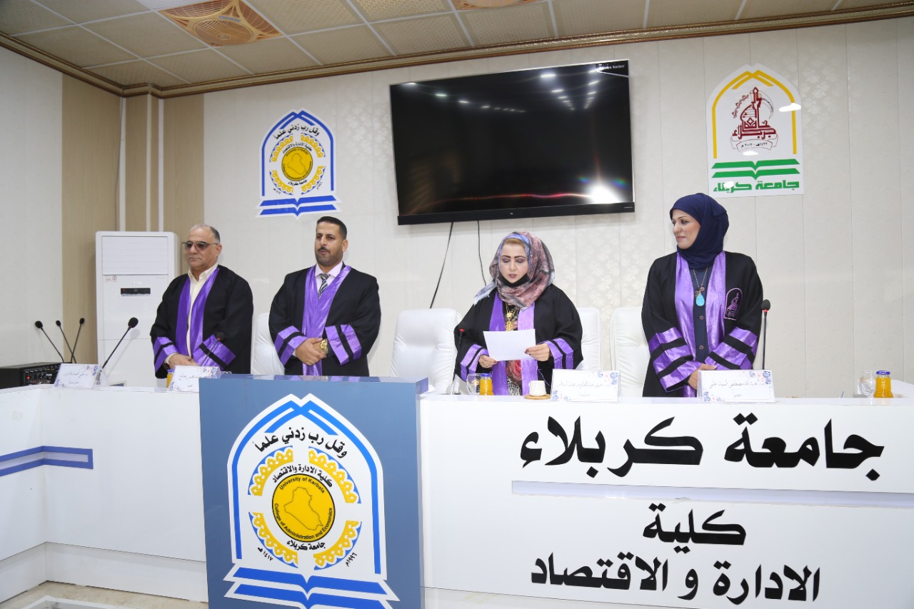 شاركت الدكتورة هبة الله مصطفى عضوا في مناقشة علمية لطالبة الماجستير/ قسم العلوم الماليه والمصرفية/جامعة كربلاء (سجى محمد ايوب) في يوم الخميس المصادف ١٨/١١/٢٠٢١ عن رسالتها الموسومة (اختبار نموذج تسعير الموجودات متعدد العوامل في التنبؤ بعوائد الاسهم) وتألفت لجنة المناقشة من السادة: