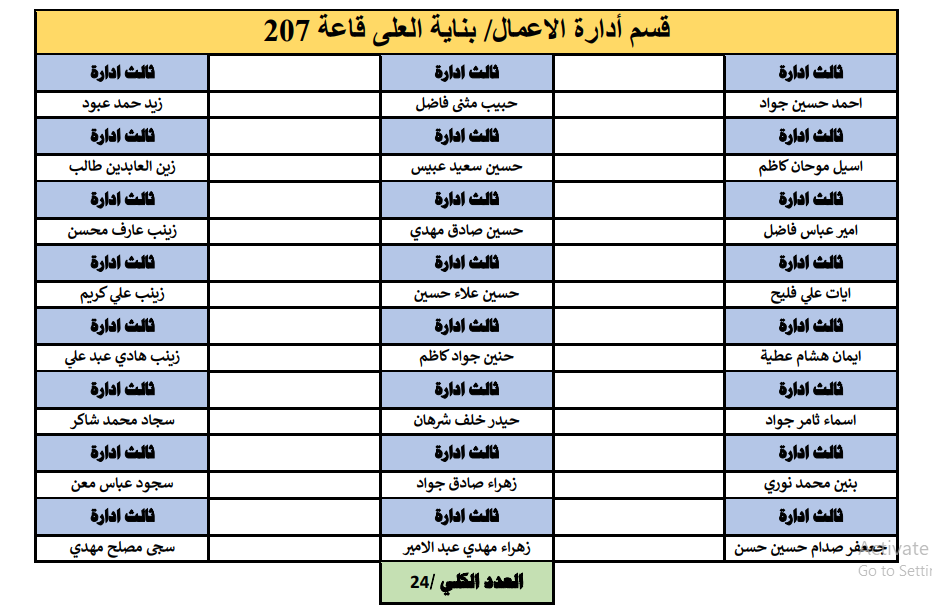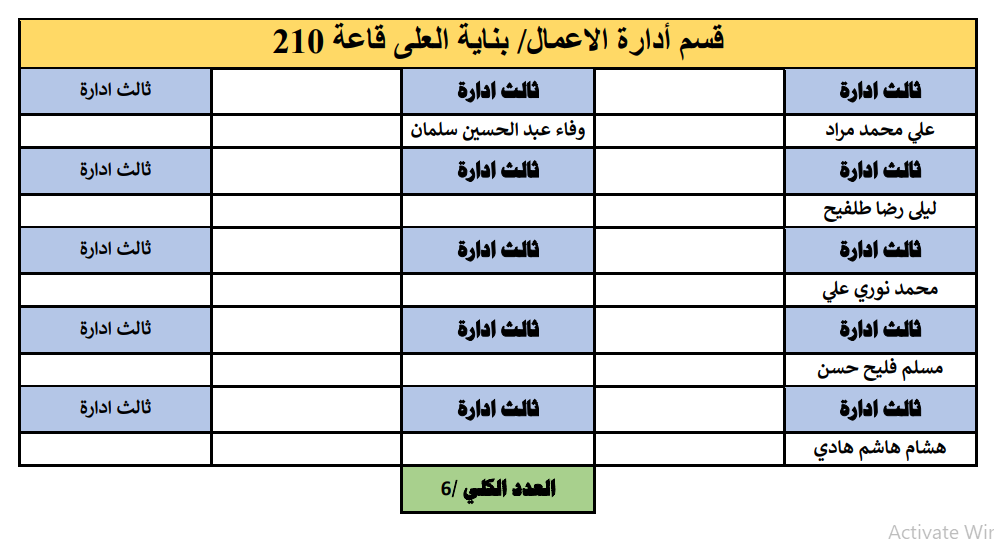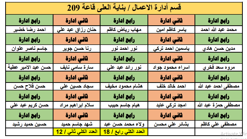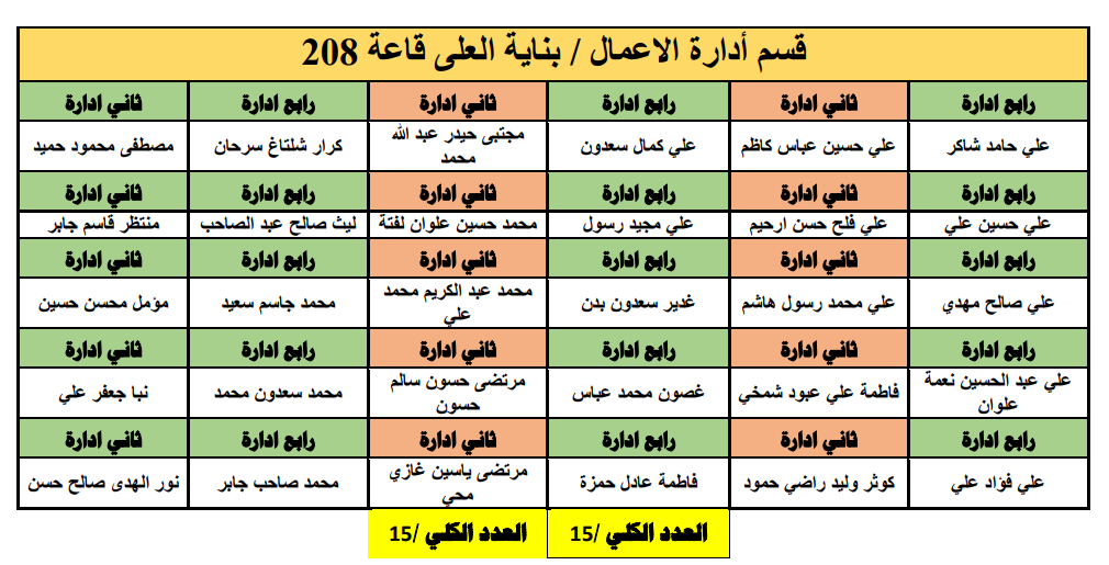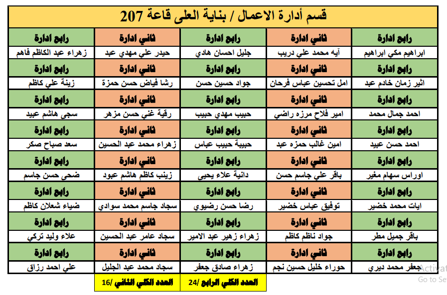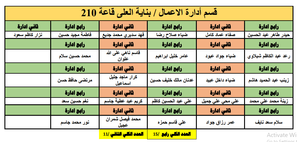 جدول توزيع طلبة قسم ادارة الاعمال على القاعات الامتحانية