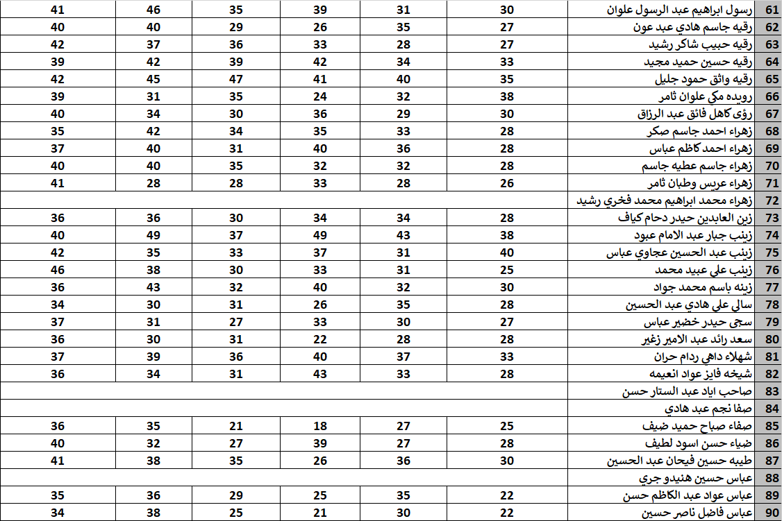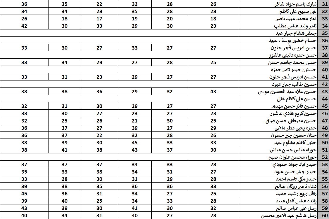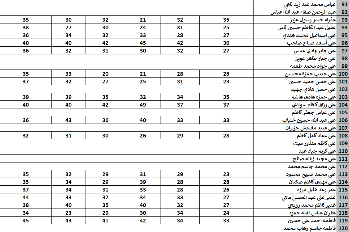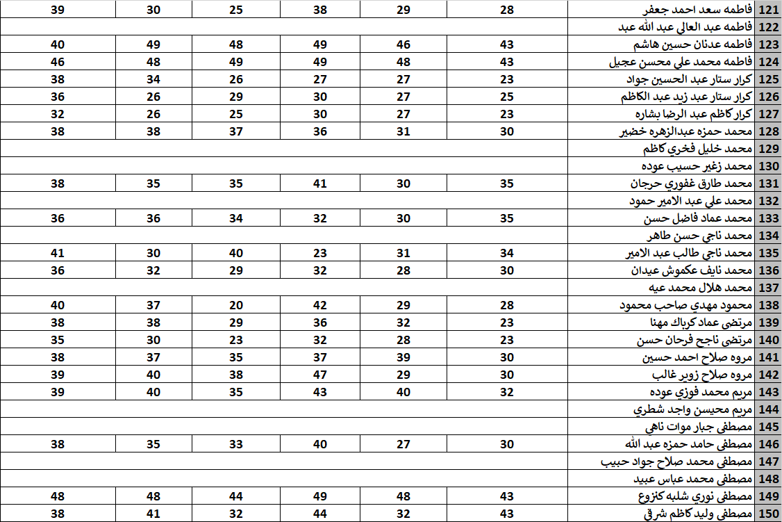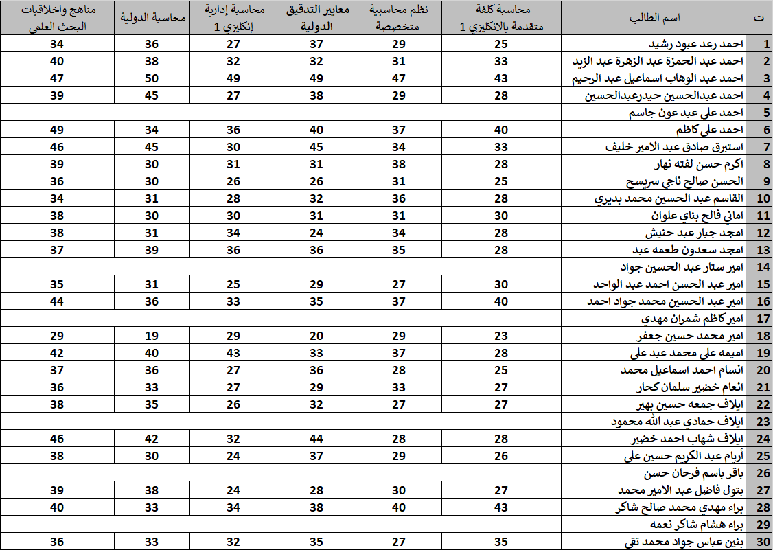 درجات السعي السنوي لطلبة قسم المحاسبة / المرحلة الرابعة صباحي