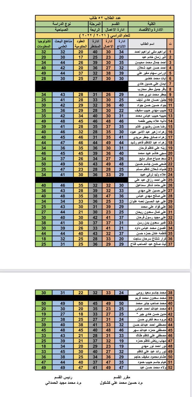 سعيات الكورس الاول لطلبة قسم ادارة الاعمال مرحلة رابعة