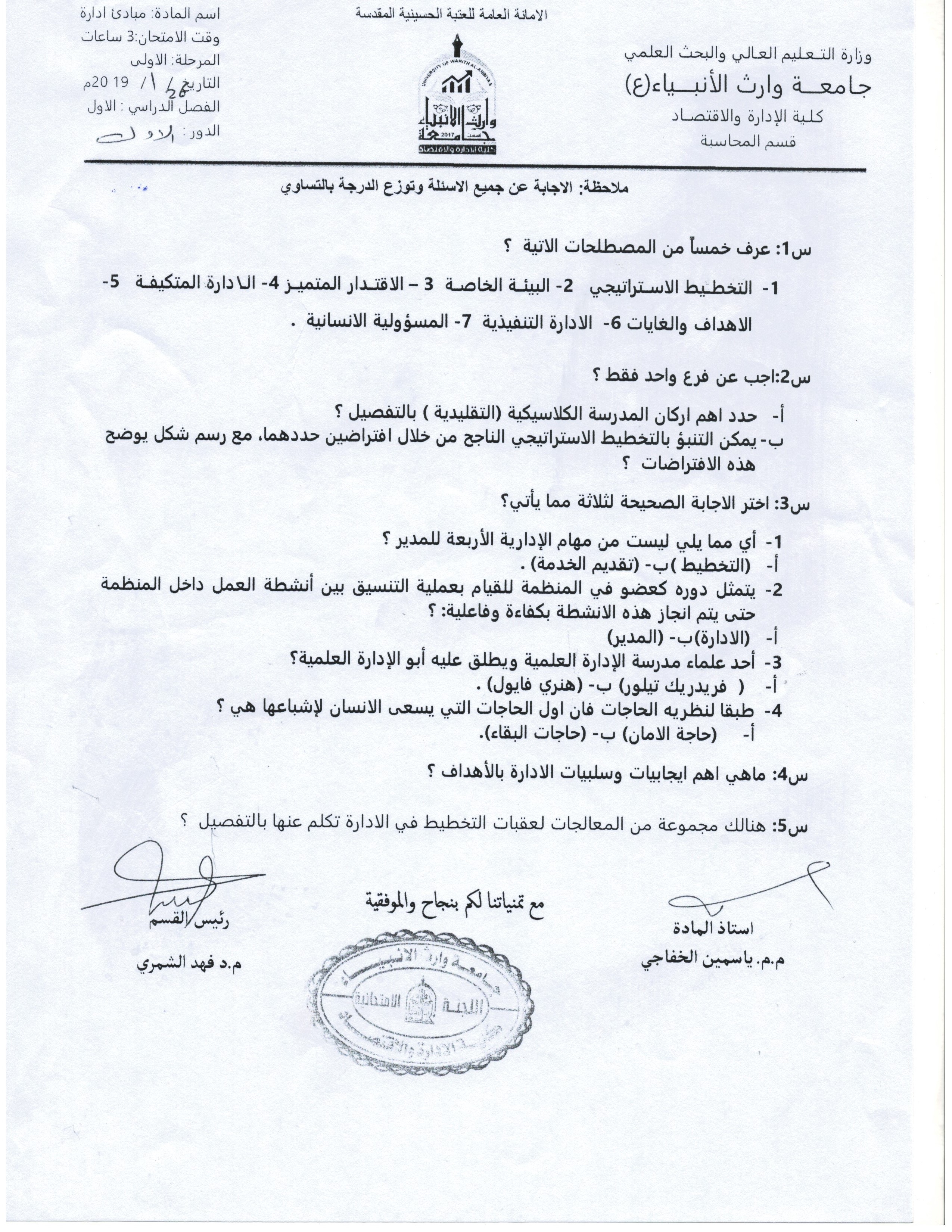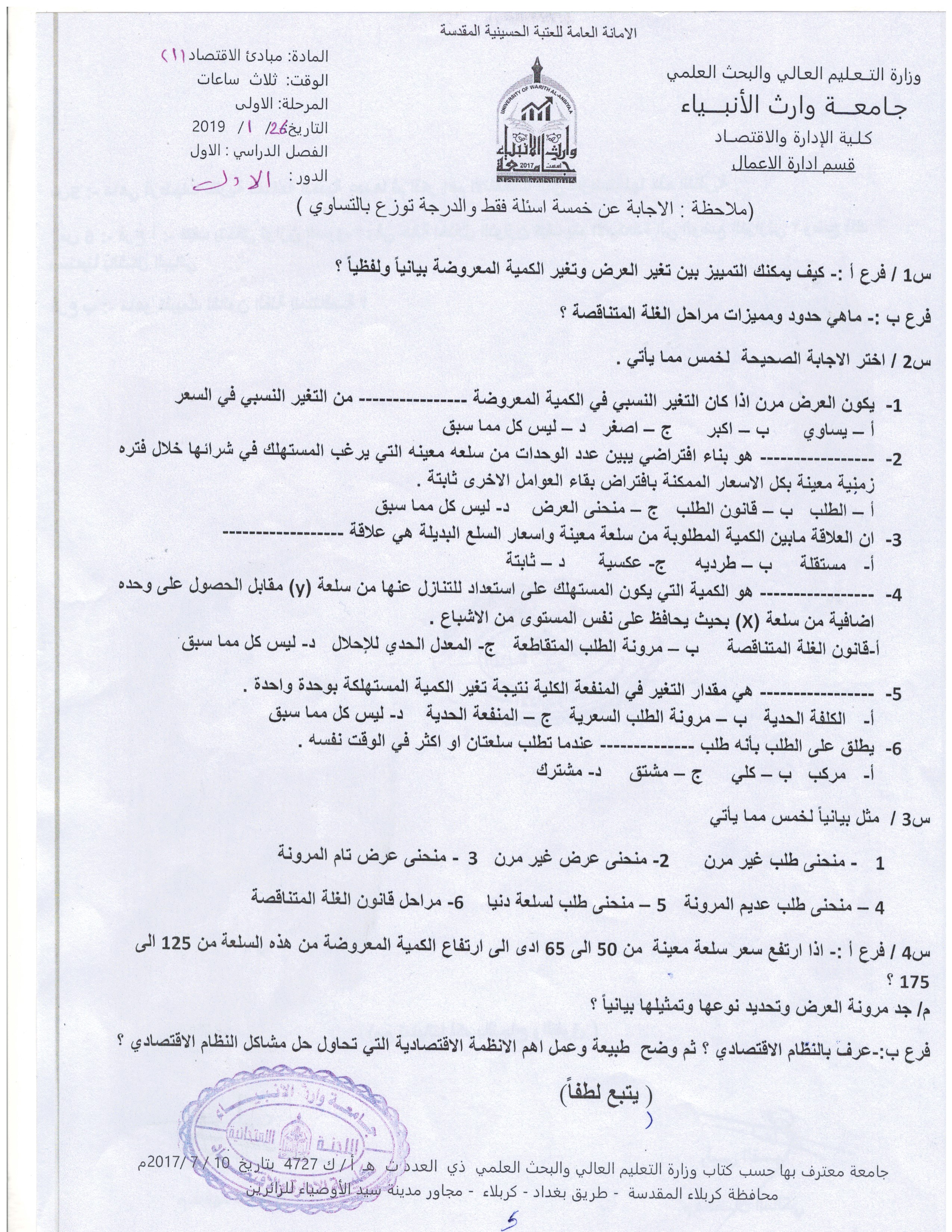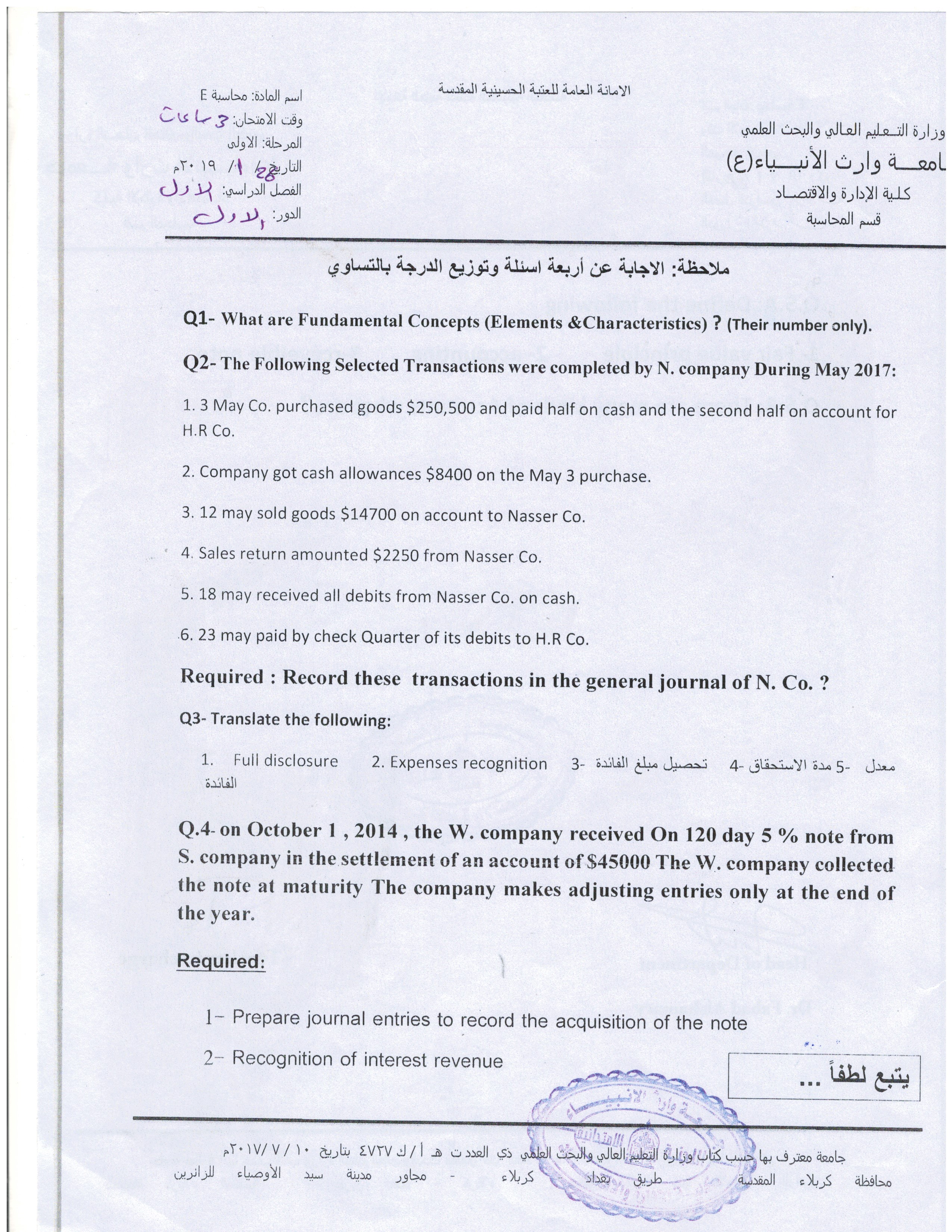 بعض اسئلة الكورس الاول للمرحلة الاولى والثانية ولقسمي المحاسبة وادارة الاعمال المجموعة الثانية