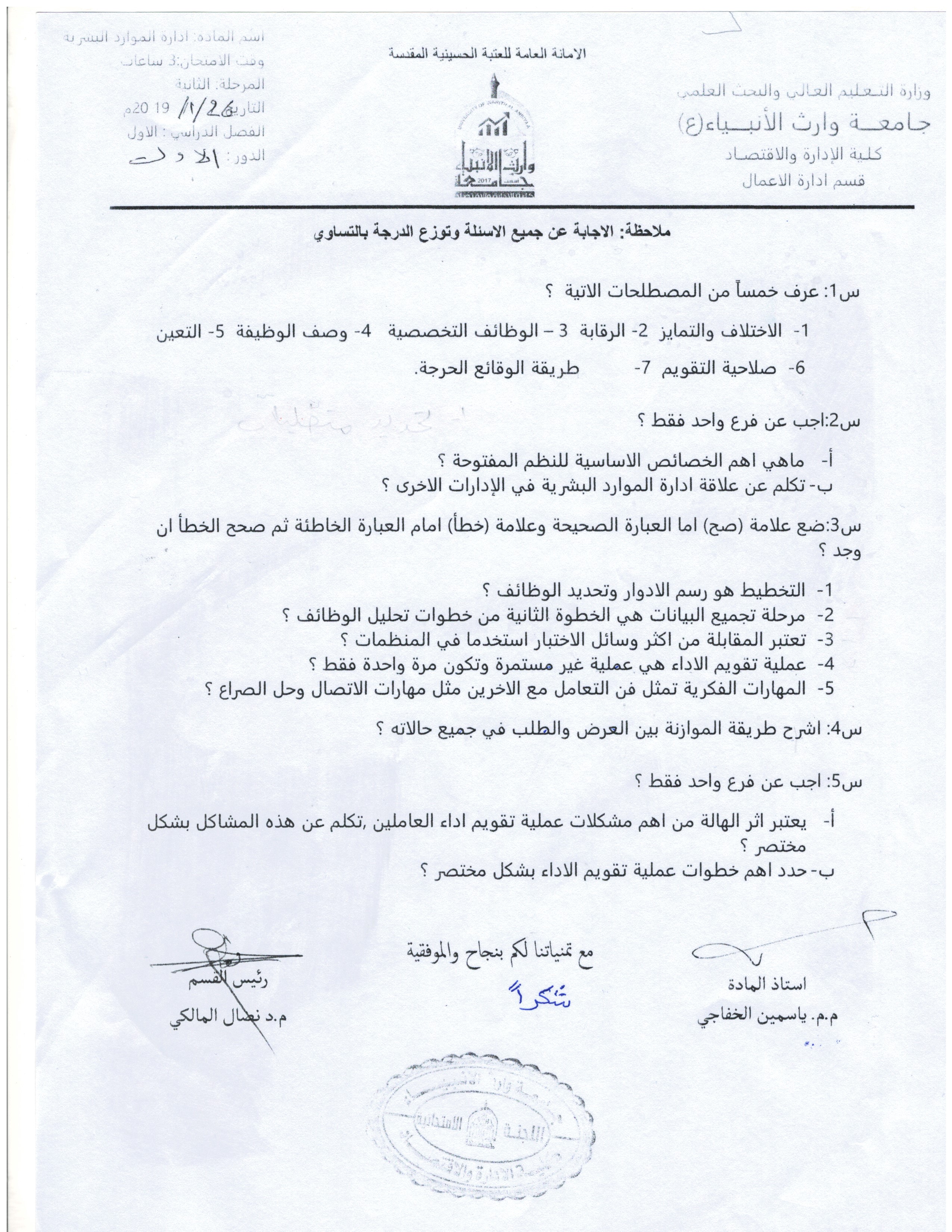 إجراء الامتحان المشترك لتعزيز الرصانة العلمية في قسم العلوم المالية والمصرفية الاسلامي كلية العلوم الاسلامية