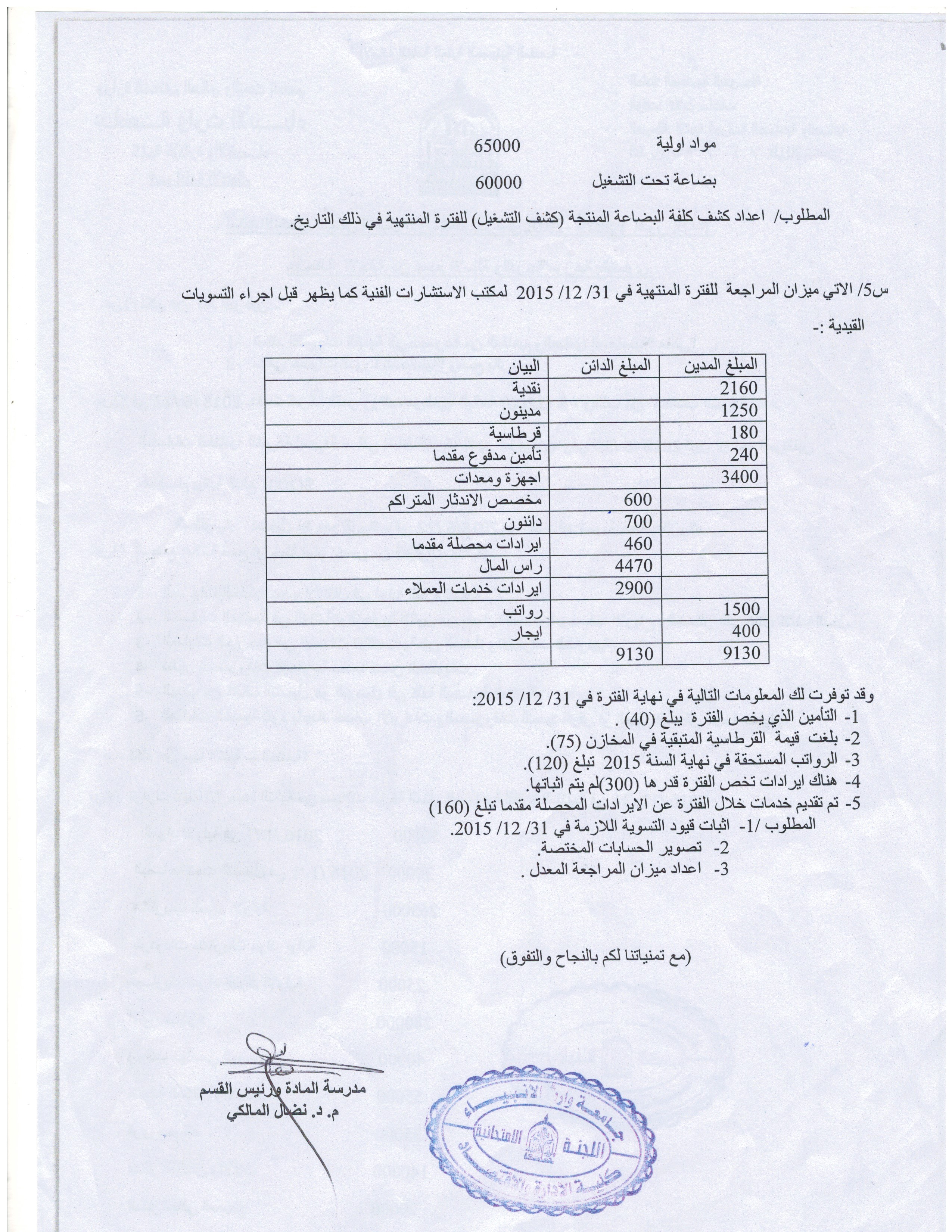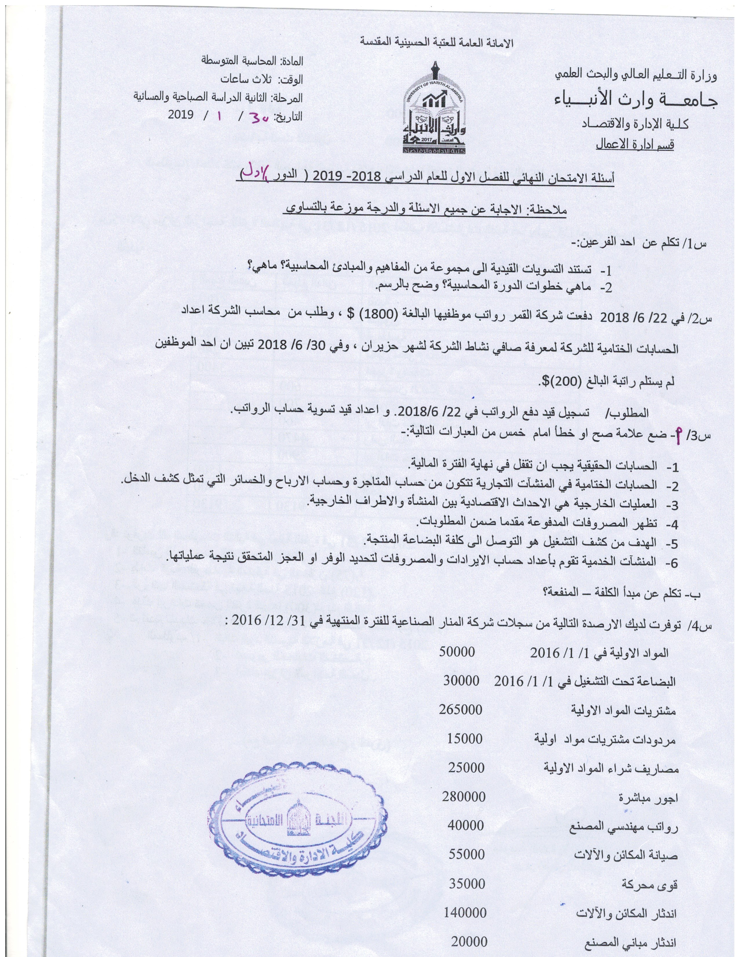 بعض اسئلة الكورس الاول للمرحلة الاولى والثانية ولقسمي المحاسبة وادارة الاعمال المجموعة الرابعة