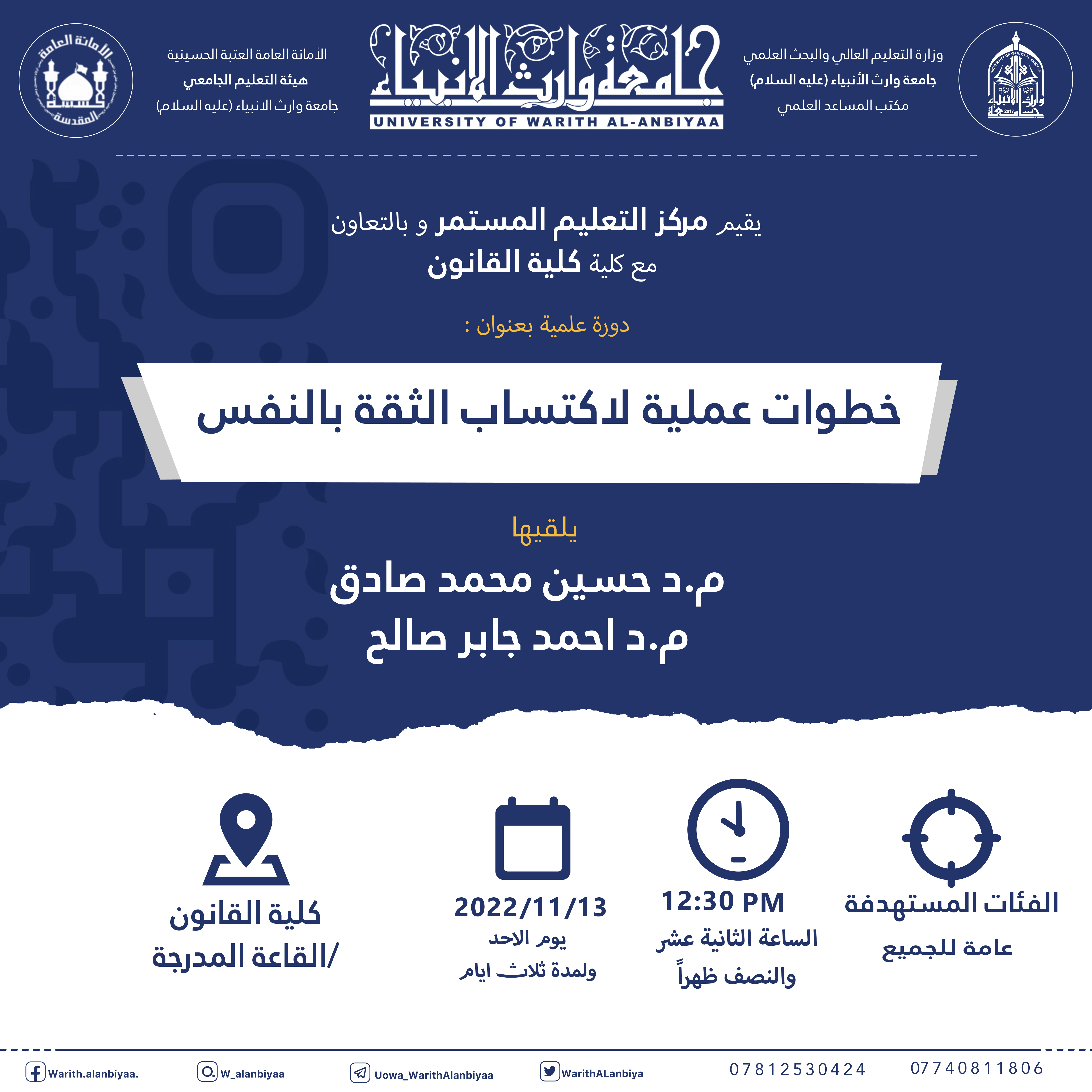 اعلان عن دورة بعنوان خطوات عملية لاكتساب الثقة بالنفس