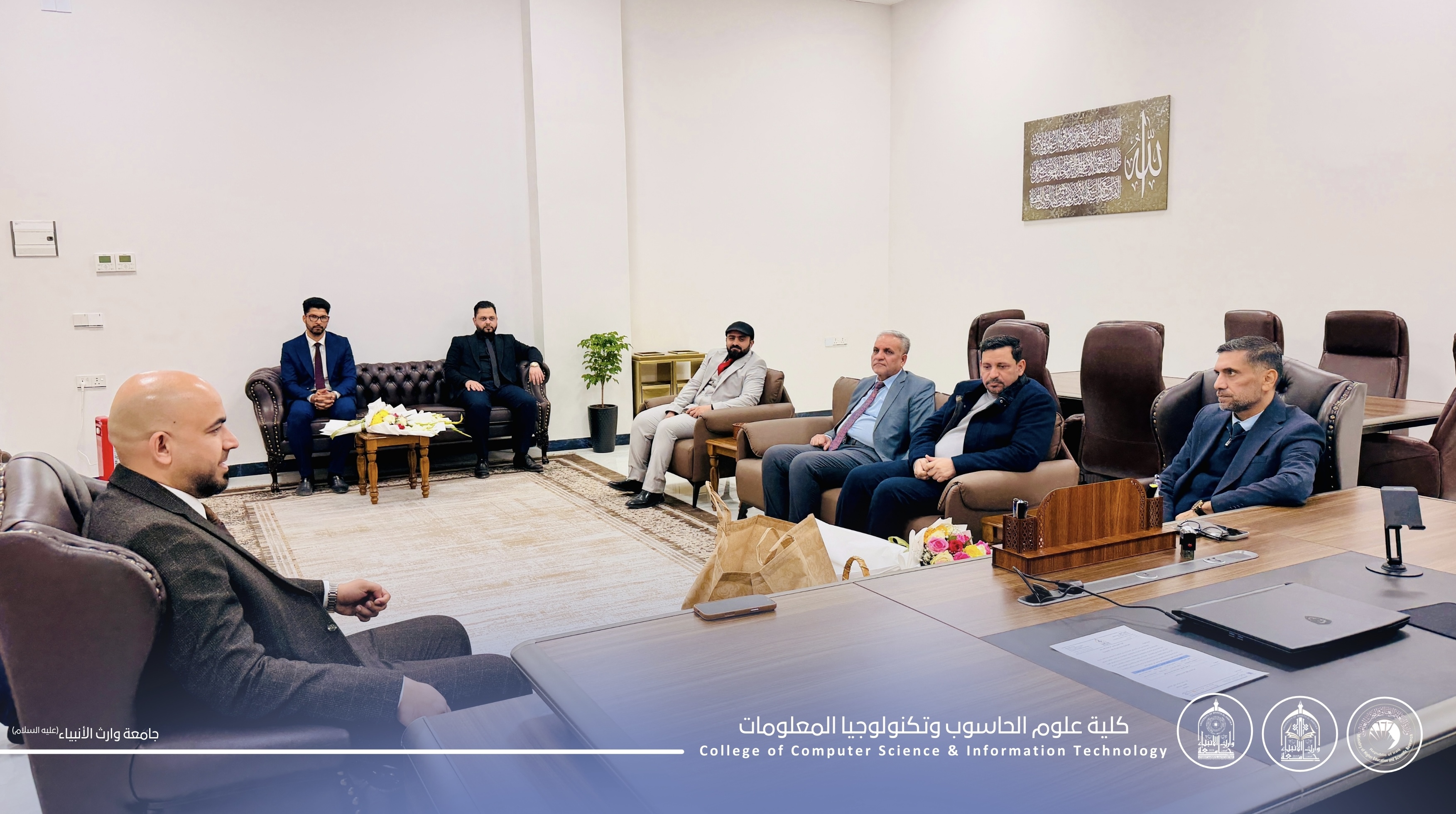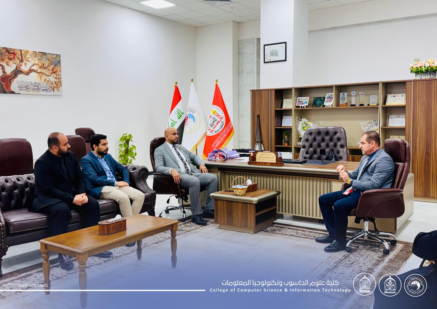 استقبل السيد عميد كلية علوم الحاسوب وتكنولوجيا المعلومات، الأستاذ المساعد الدكتور حيدر محمد علي الغانمي، وفداً رفيع المستوى من كلية الهندسة - جامعة وارث الانبياء- برئاسة السيد العميد الأستاذ المساعد الدكتور حسين هادي حسين، يرافقه نخبة من أساتذة الكلية.