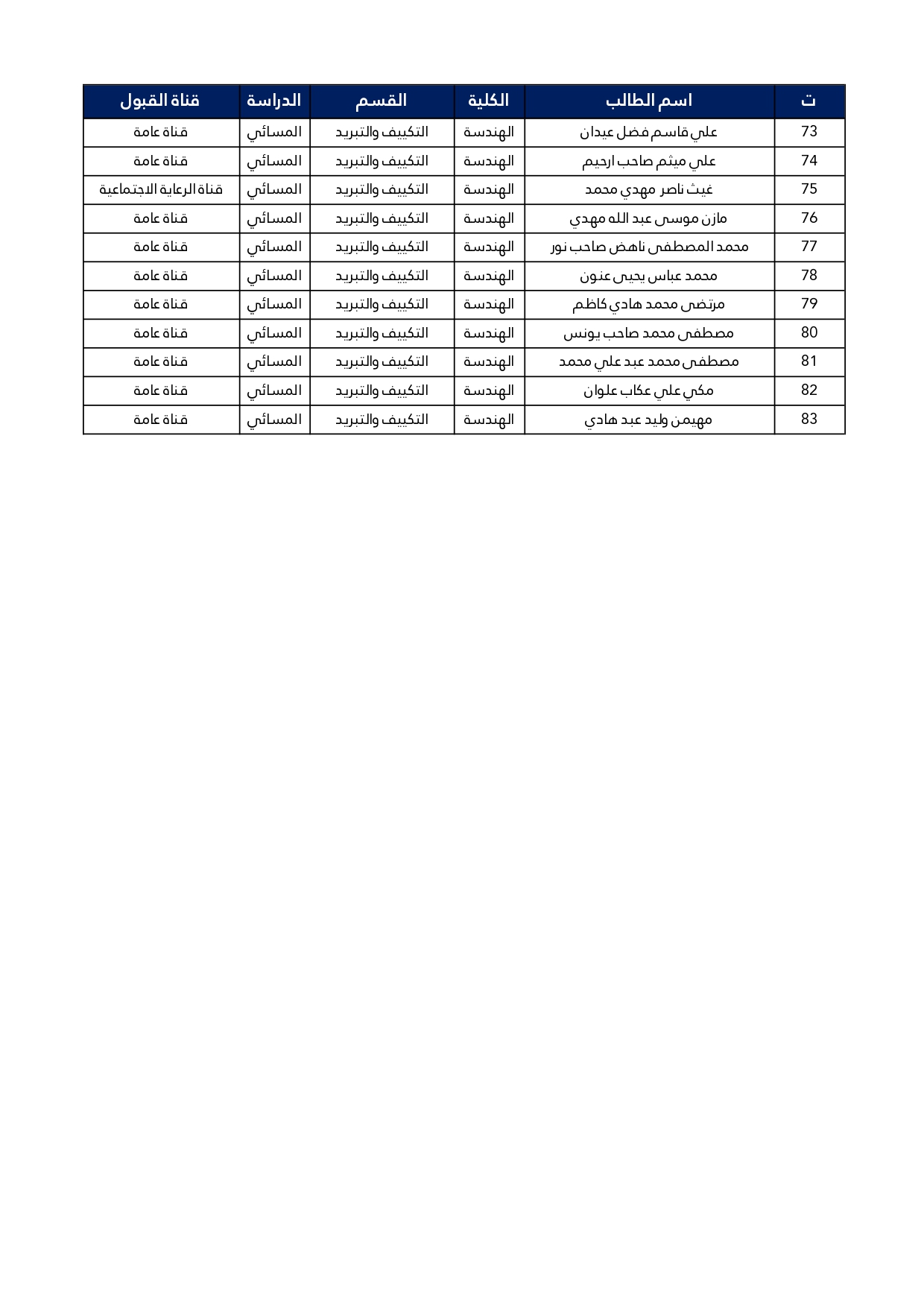قسم هندسة تقنيات التكييف والتبريد حاز على المركز الثالث ضمن الأقسام العلمية.