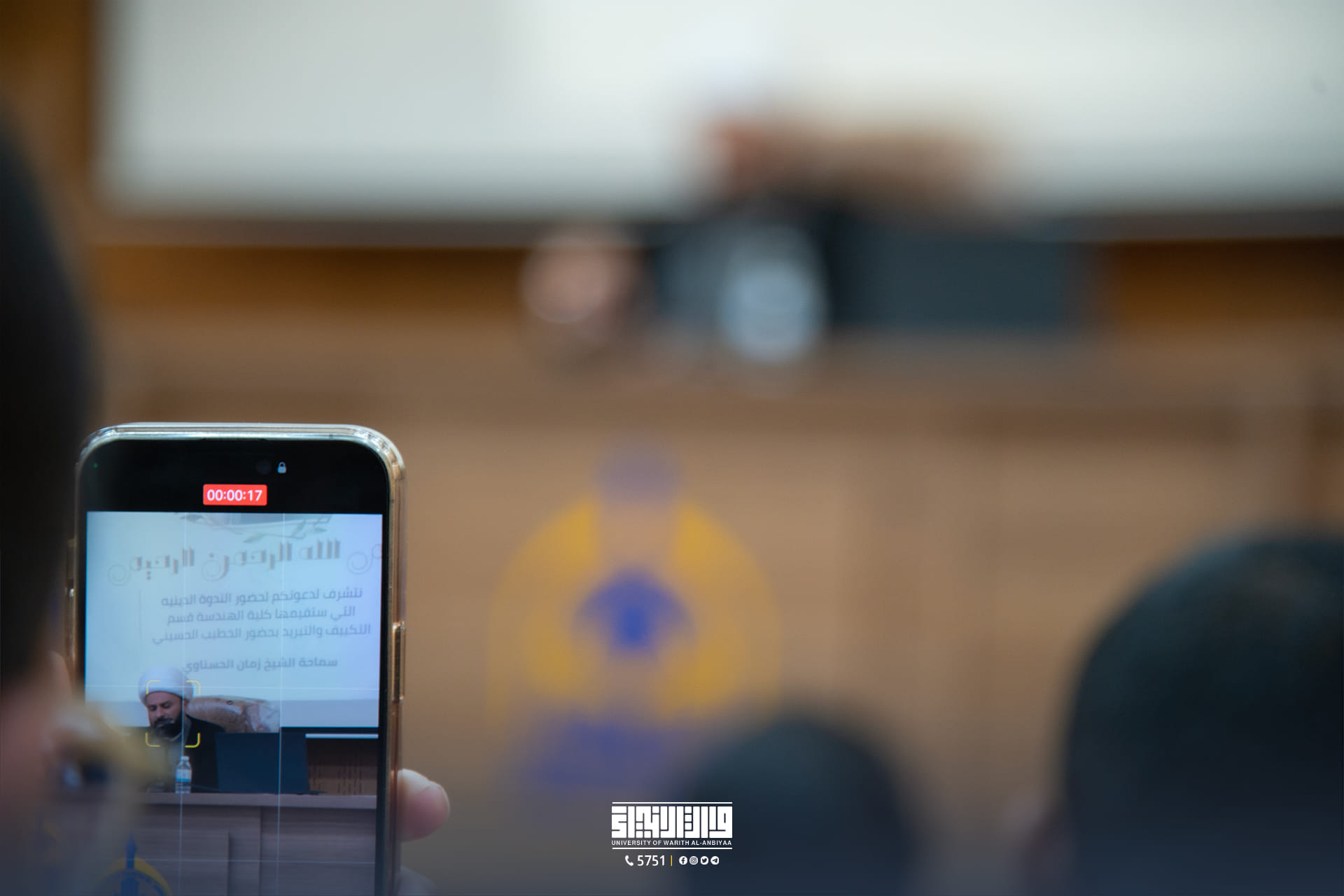 بحضور مميز لطلبة الجامعة إستضافت عمادة كلية الهندسة في جامعة وارث الانبياء(عليه السلام) الخطيب الحسيني فضيلة الشيخ زمان الحسناوي (دام توفيقه) لتقديم ندوة ثقافية تحت عنوان (المشروع الالهٰي بمراحله السبعة).