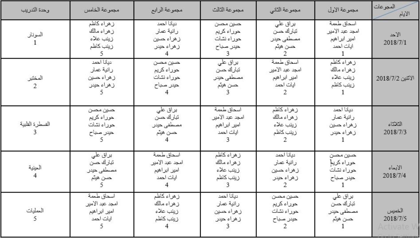 3- كل مجموعة تقدم تقرير حول نشاطات التدريب في الوحدات التدريبية