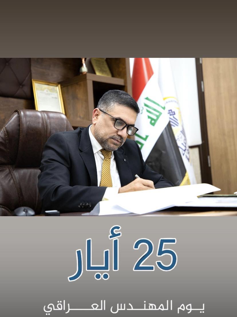 في يوم المهندس العراقي تتقدم عمادة كلية الهندسة في جامعة وارث الانبياء (ع) بإهداء أسمى آيات التقدير لكل مهندس ومهندسة يساهمون في بناء الوطن بصمت ويبدعون بإتقان نحتفي بجهودهم في كل مشروع وكل موقع عمل من أجل عراق أقوى