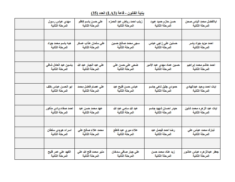 خارطة جلوس طلبة قسم الهندسة المدنية - المرحلة الثانية