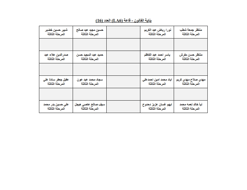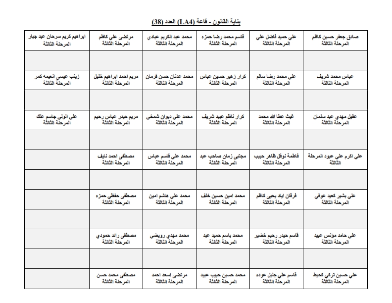 خارطة جلوس طلبة قسم الهندسة المدنية - المرحلة الثالثة
