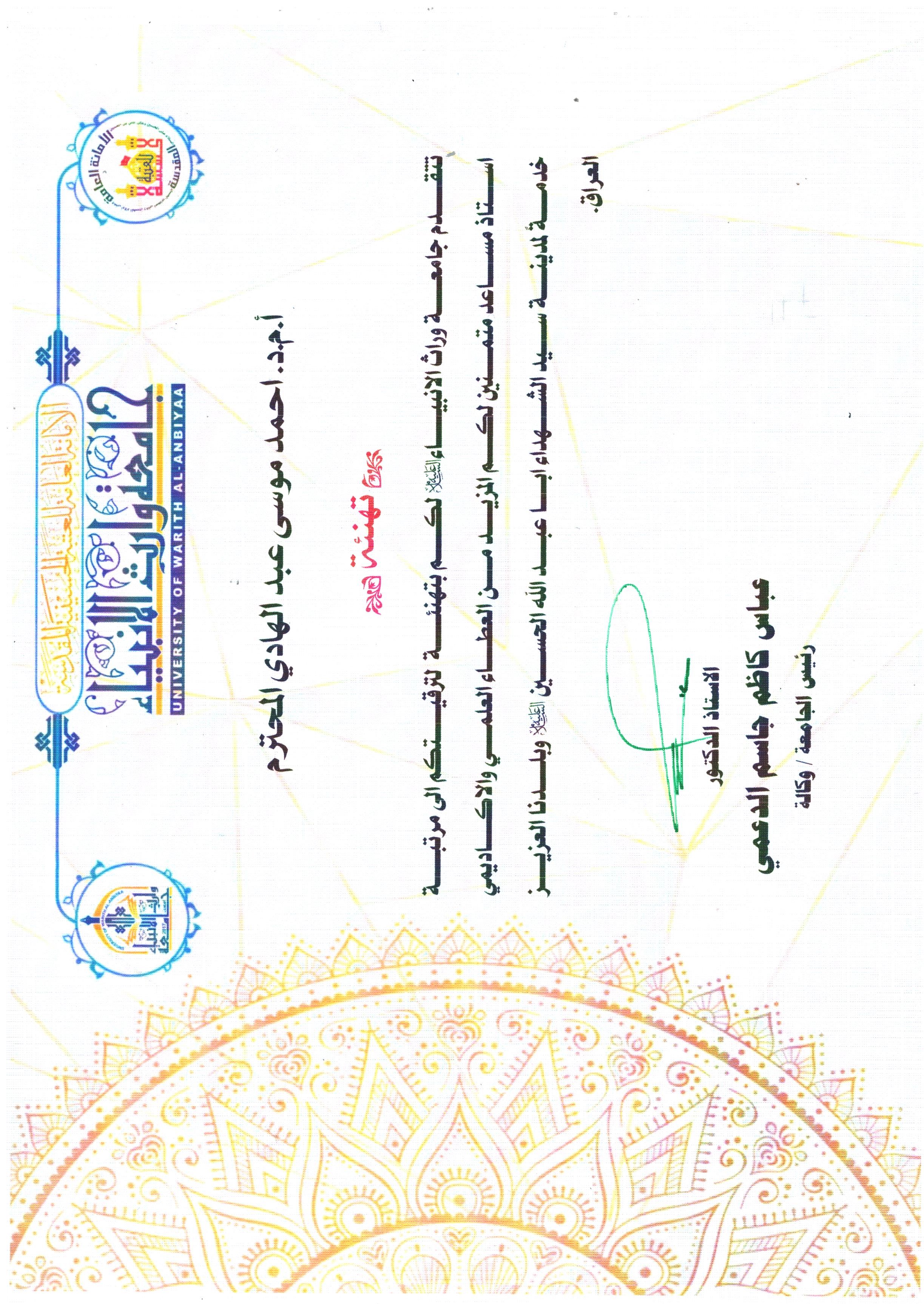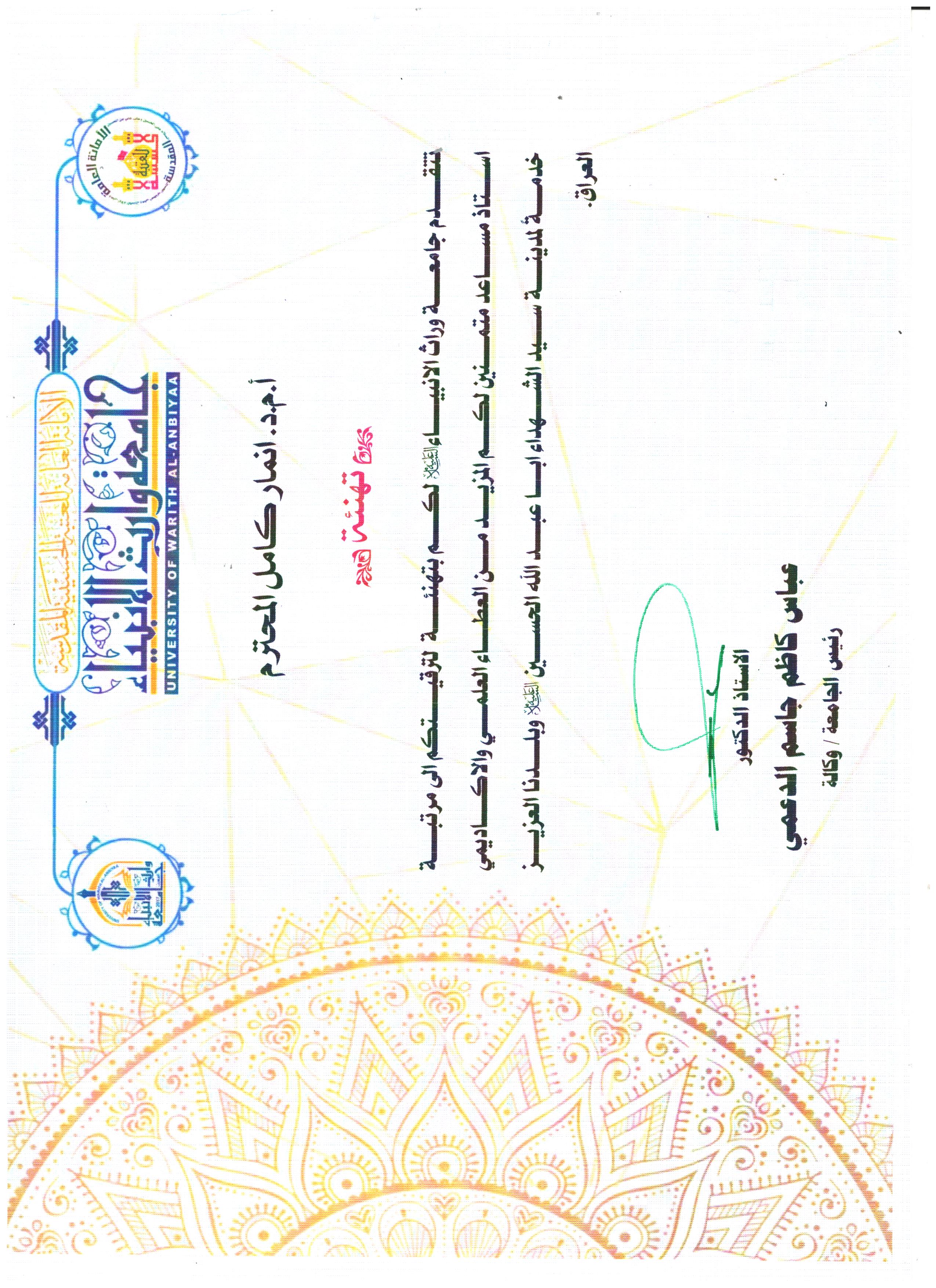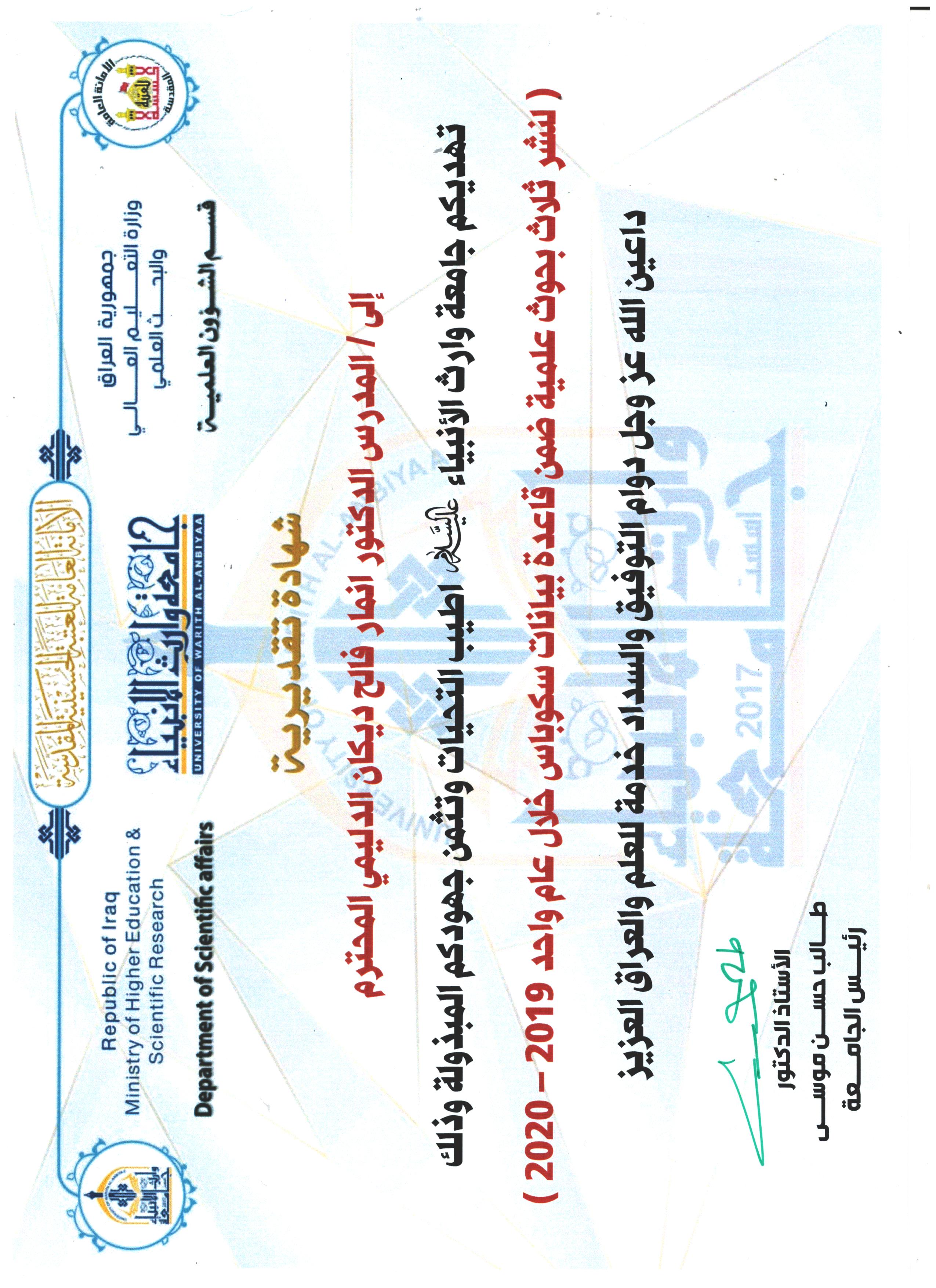 كادر كلية العلوم الإسلامية يشارك في حملة التشجير داخل جامعة وارث الأنبياء