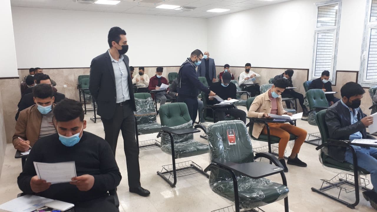 جانب من الامتحانات الحضورية لطلبه قسم هندسة تقنيات التكييف والتبريد حيث سارت الامتحانات بشكل انسيابي وسلس مع الالتزام بالتباعد الاجتماعي وتوصيات لجنه الصحة والسلامة