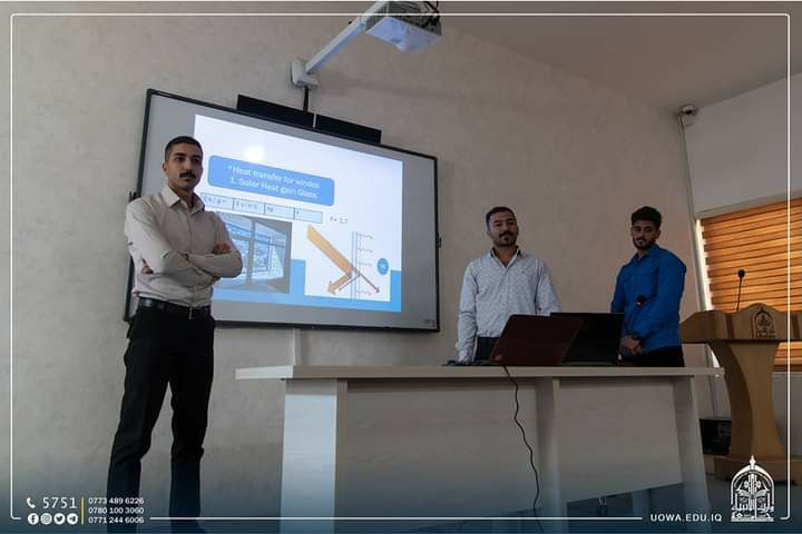 حرصا على ربط الجانب النظري بالجانب العملي والاستفادة من مشاريع توسعة الجامعة ، قدم عدد من طلبة المرحلة الرابعة في قسم هندسة تقنيات التكييف والتبريد سيمنرات علمية ضمن مادة التكييف والتبريد ، وجاء ذلك بحضور السيد رئيس الجامعة الاستاذ الدكتور ابراهيم الحياوي وقال مدرس المادة م.م ايهاب عمر: عمل الطلبة على دراسة ابنية الجامعة ودراسة كل طابق فيها مع حساب الاحمال الحرارية والحاجة الفعلية لكميات التبريد في جميع ابنية الجامعة والابنية قيد الانشاء ، حيث تهدف هذه المناقشات والسيمنرات الى تعزيز الجانب العلمي للطلبة.