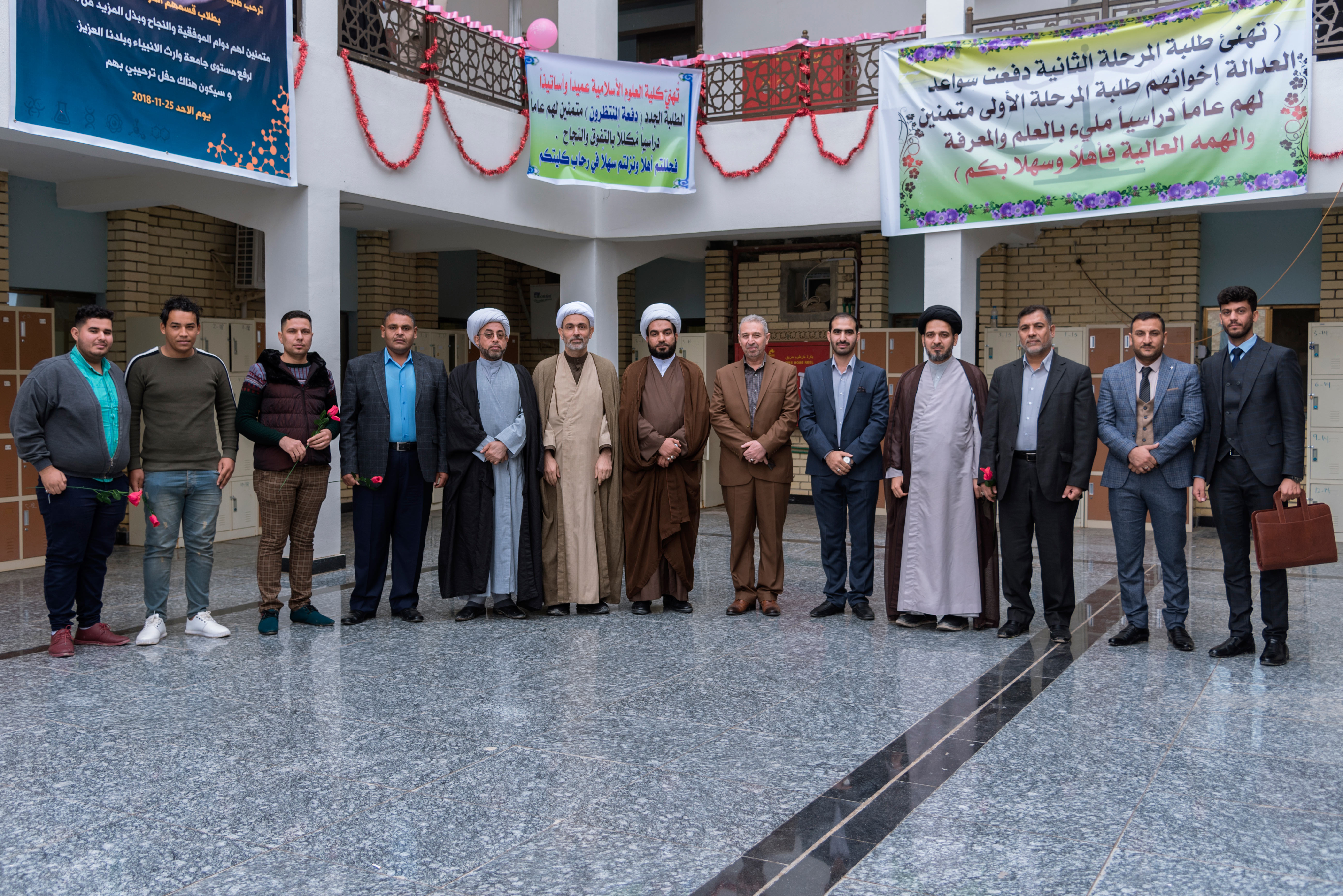 بذكرى بداية العام الدراسي الجديد أقامت كلية العلوم الإسلامية بقسميها ( علوم القرآن والفقه وأصوله) حفلاً إستقبالياً لطلبتها الجُدد وقد حضر الحفل السيد الدكتور طلال فائق الكمالي عميد الكلية ورؤساء الأقسام , وأفتتح الحفل بمشاركة عميد الكلية بإلقائه كلمة توجيهية الى طلبة الكلية حثهم فيها على العلم والتعليم والإشارة الى أهمية هذه الكلية وأكد على التحلي بالأخلاق مشيراً الى حديث أهل البيت (عليهم السلام) بمضمونه : (( كل جميل جميل والجميل منك وكل قبيح قبيح والقبيح منك أقبح حرصاً منه )) بأن يتحلى طلاب كلية العلوم الإسلامية بالخلق العالي والرفيع الذي يمثل خلق أهل البيت (عليهم السلام) لأن الخلق يساير العلم .