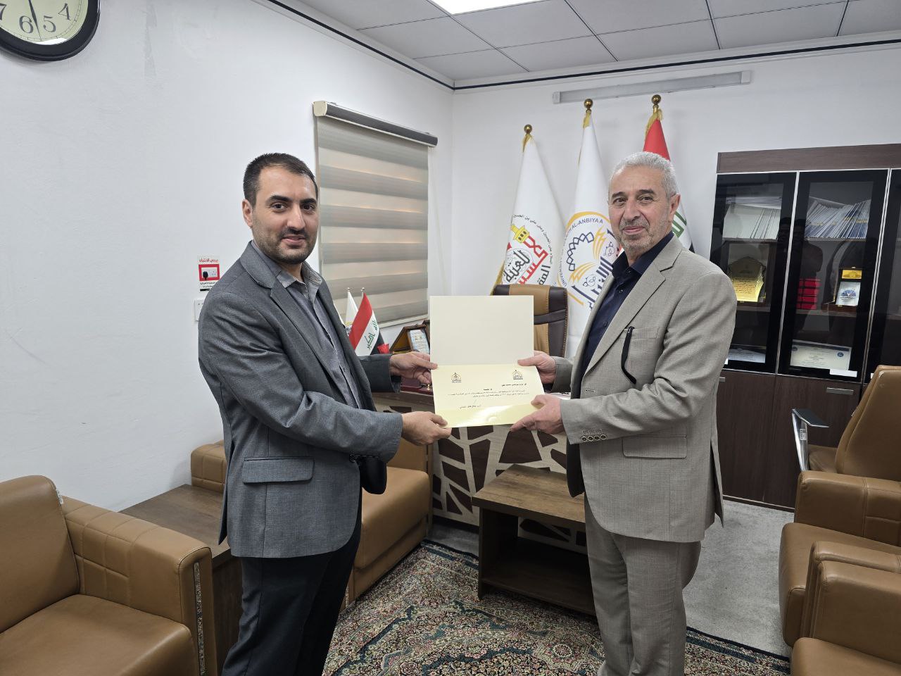 السيد عميد كلية العلوم الإسلامية يُكرم التدريسي م.م مرتضى علي تقديرًا لجهوده الأكاديمية