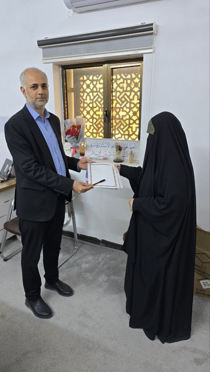 تهنئة عميد كلية العلوم الإسلامية إلى الدكتورة نور مهدي كاظم بمناسبة ترقيتها إلى أستاذ دكتور