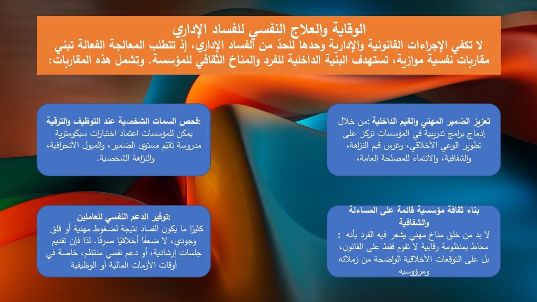 • الإجراءات النفسية الوقائية والعلاجية للحد من الفساد الإداري؛
