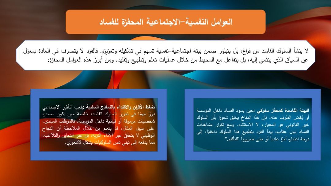 • الدوافع النفسية الجوهرية والعوامل الاجتماعية المحفّزة للفساد؛
