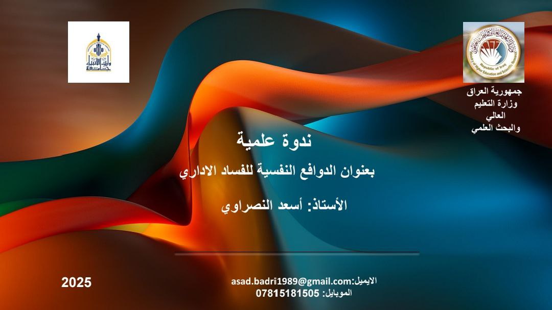 ندوة علمية تكشف الأبعاد النفسية للفساد الإداري في طرح رائد للأستاذ أسعد النصراوي بعنوان: