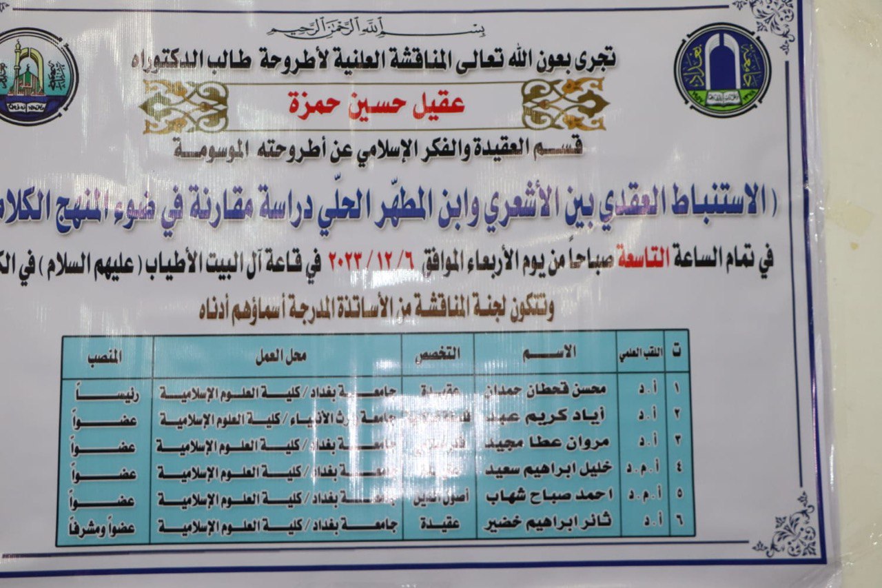 وذلك في 6 ديسمبر 2023، الساعة 9:00 صباحًا. في قاعة آل البيت الأطياب عليهم السلام، جامعة بغداد.