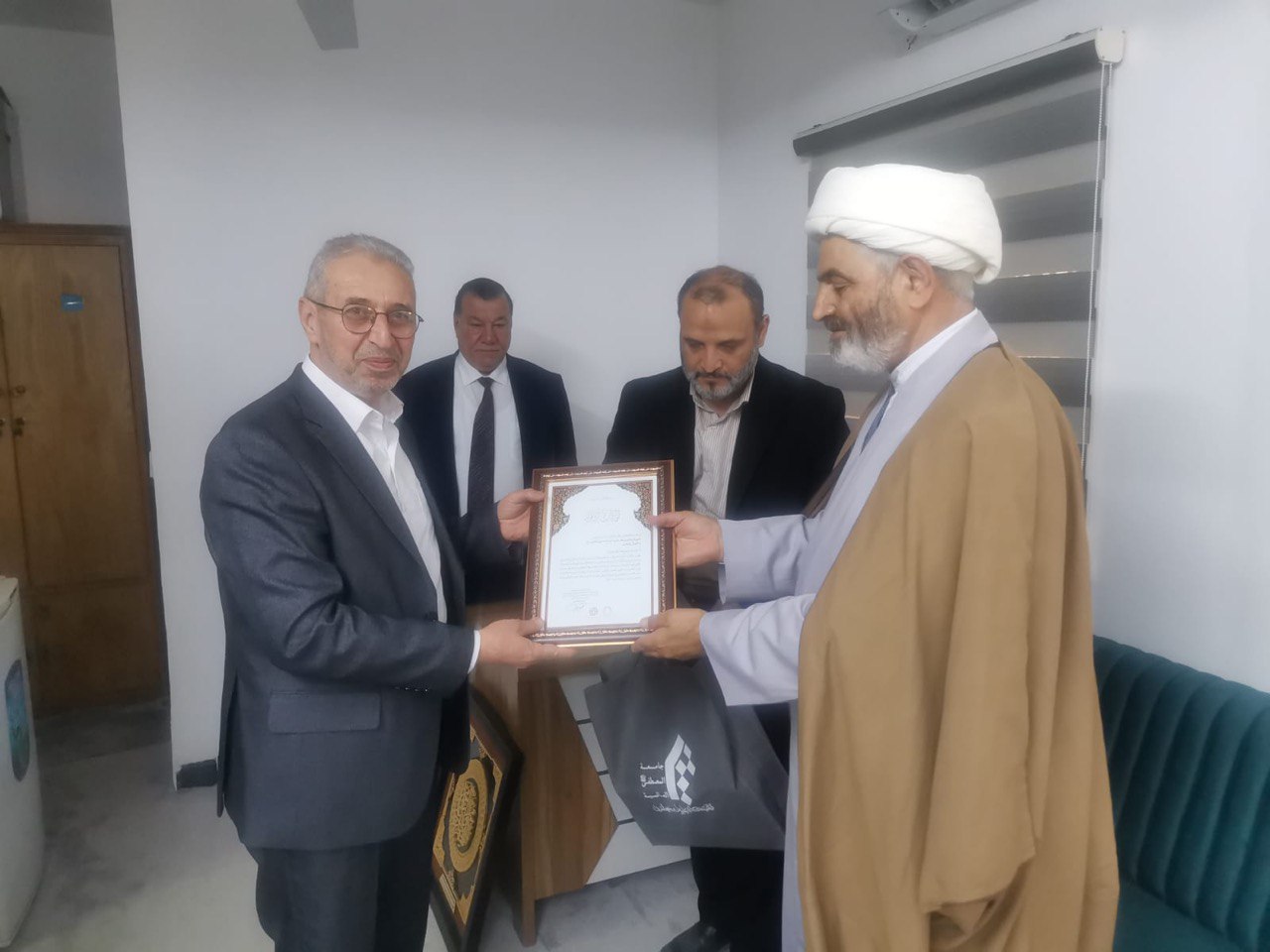 قد تم تكريم الأستاذ الدكتور طلال فائق الكمالي، عميد كلية العلوم الإسلامية في جامعة وارث الأنبياء (ع)، من قبل الأمانة العامة للمؤتمر الدولي الثالث لرحيل المفكر العلامة الشيخ مصباح اليزدي، ورئيس مؤسسة الإمام الخميني للتعليم والبحوث الدكتور محمود الرجبي.