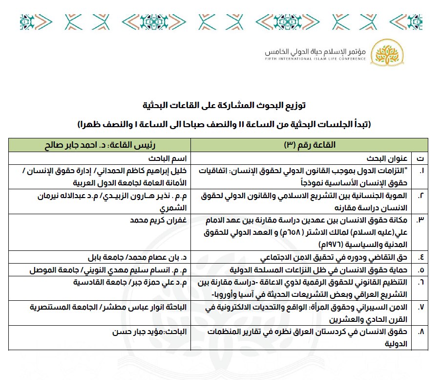 أبحاث المؤتمر العلمي الخامس "الإسلام حياة" الموسوم بـ "حقوق الإنسان والتحديات المعاصرة"
