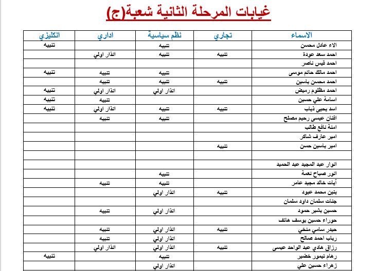 غيابات المرحلة الثانية