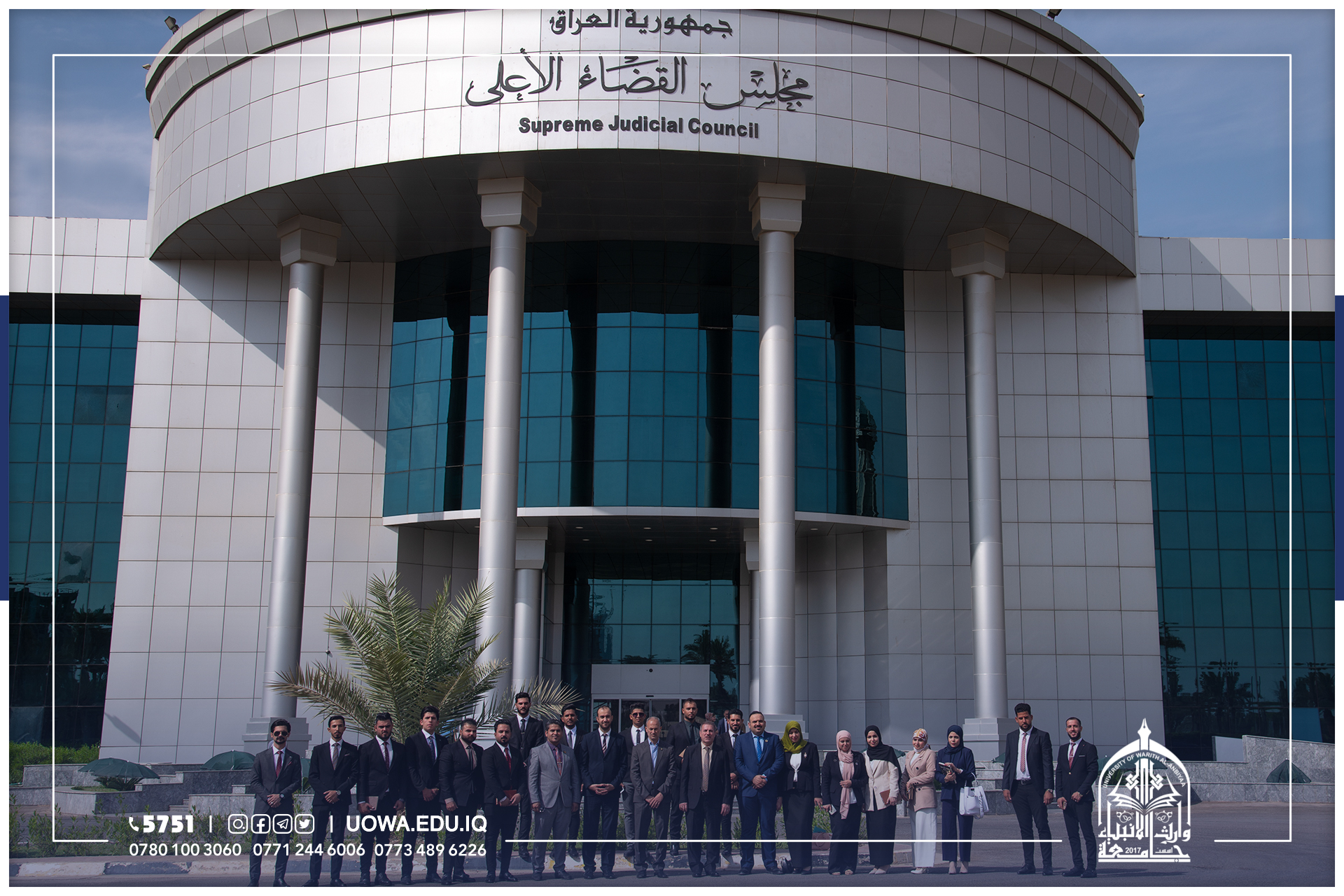اقامت كلية القانون في جامعة وارث الانبياء(عليه السلام)، سفرة علمية لطلبة الكلية برفقة السادة اعضاء هيئة التدريس الى إتحاد الحقوقيين العراقيين المقر العام في العاصمة بغداد ،حيث تجول الطلبة برفقة رئيس الاتحاد الدكتور محمد نعمان الداودي داخل اروقة الاتحاد والتعرف على الانشطة الفكرية والثقافية له