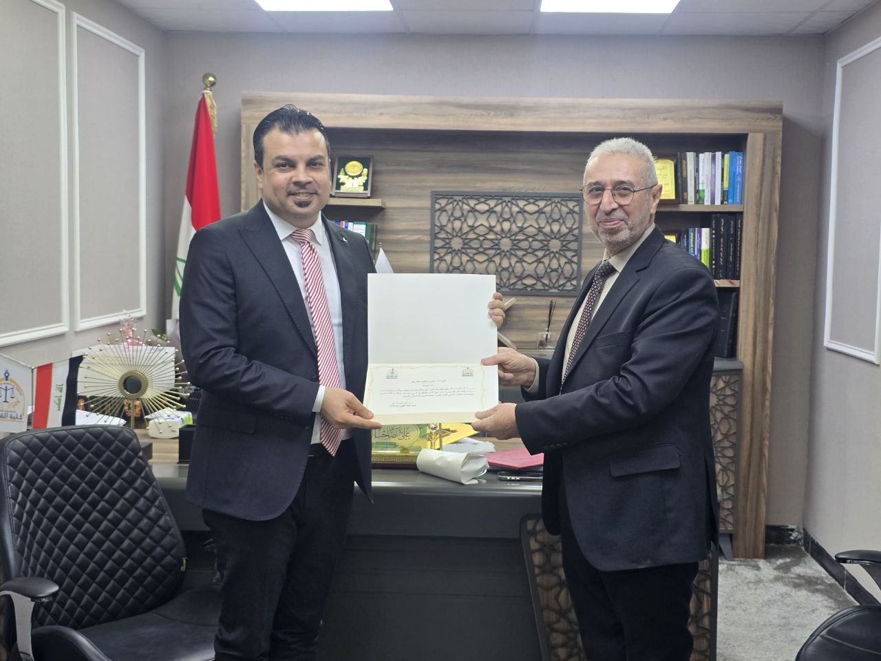 قدم السيد عميد كلية العلوم الإسلامية، الدكتور طلال فائق الكمالي، أسمى آيات التهاني والتبريكات إلى عميد كلية القانون، الدكتور علي صاحب الشريفي بمناسبة ترقيته إلى مرتبة أستاذ دكتور.