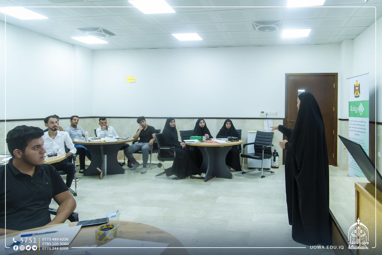 استمرار الدورات التدريبية التي تقيمها جامعة وارث الأنبياء/ شعبة التأهيل والتوظيف ضمن مبادرة"ريادة" الحكومية التي تهدف إلى دعم مشاريع الطلاب والخريجين ،بمشاركة المدرب صفاء السيلاوي، على مدار أسبوعين في الشهر.